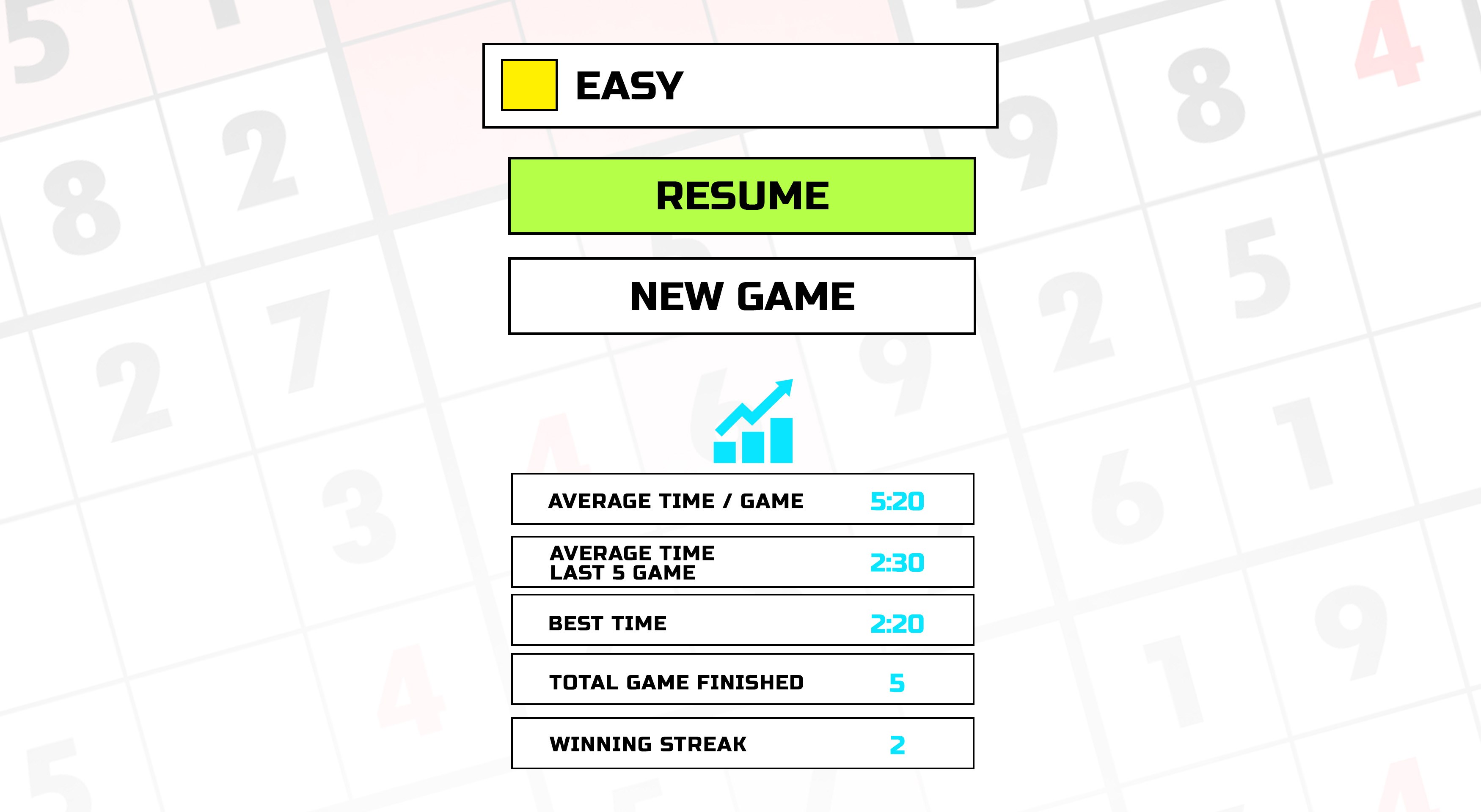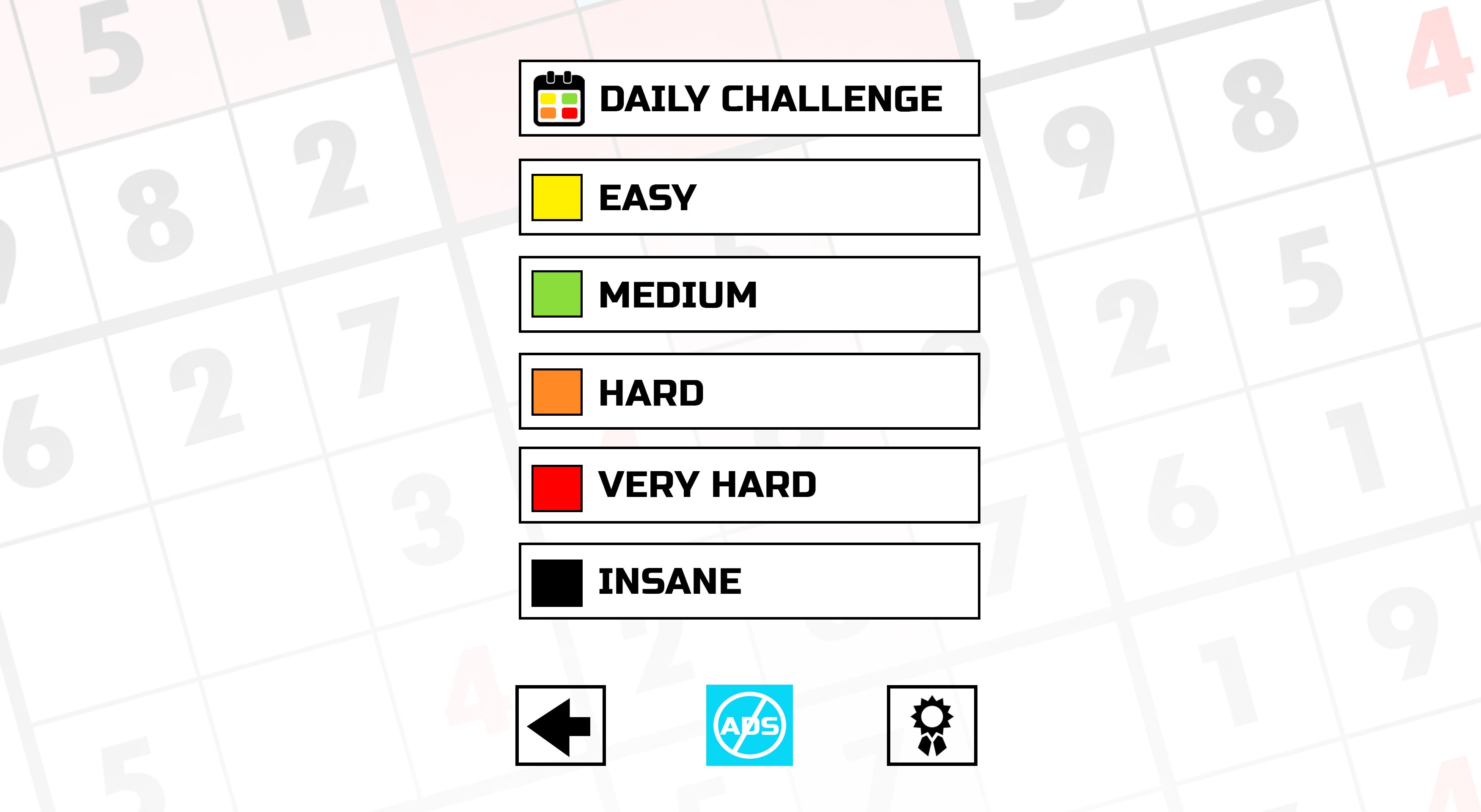 Daily Challenges : "Challenge of the Day"AchievementsUnlimited number of puzzles9x9 grids5 difficulty levels: Easy, Medium, Hard, Very Hard, InsaneYou\'ll get a lot of statistics to track your progress (best time, number of hints...)Differents grid color