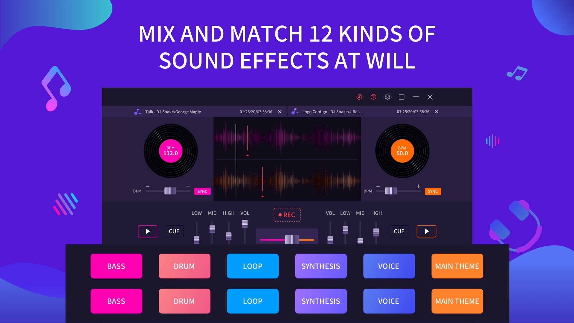 DJ Mixer is a DJ music mixing and production software. The mixer provides a variety of sound effects. The interface uses double vinyl disks to restore the live version of the DJing environment. The product also provides sliding/shortcut keys for DJing and variable speed adjustment. And other functions, to provide you with a rich product experience, so that you who like to create can also create trendy music while sitting in front of the computer.