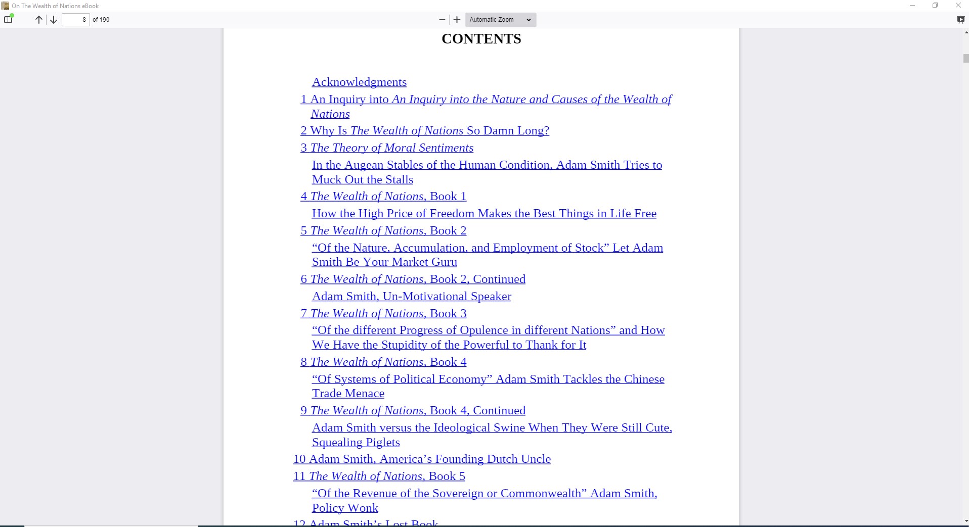 Recognized almost instantly on its publication in 1776 as the fundamental work of economics, The Wealth of Nations was also recognized as really long. The original edition totaled over nine hundred pages in two volumes—including the blockbuster sixty-seven-page “Digression concerning the Variations in the Value of Silver during the Course of the Four last Centuries,” which, to those uninterested in the historiography of currency supply, is like reading Modern Maturity in Urdu.