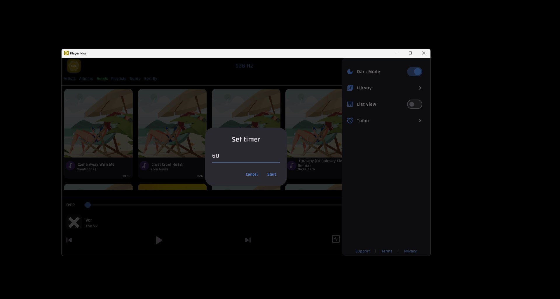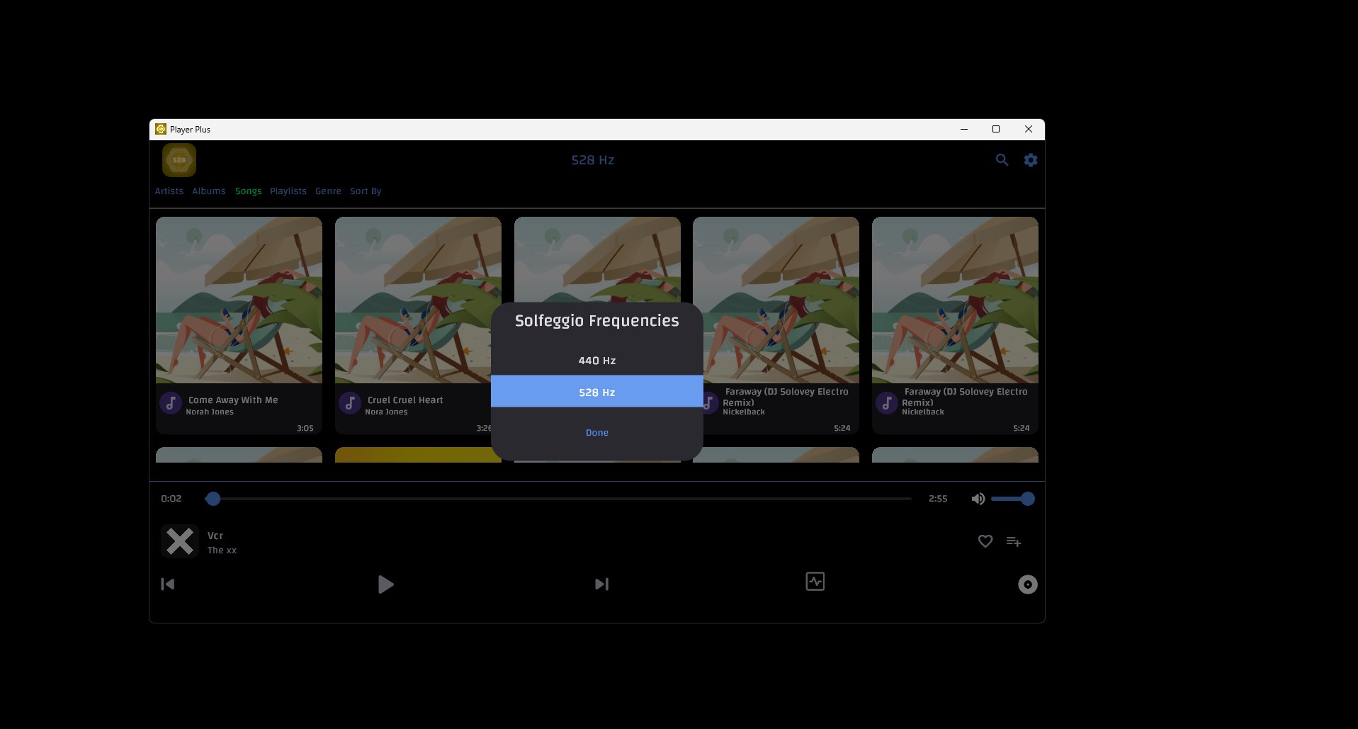 440 Hz to 528 HzRetune 440 Hz Music to 528 HzMusic player with shuffle, repeat one, repeat all modesMusic player with sleep timerMusic player with custom playlists