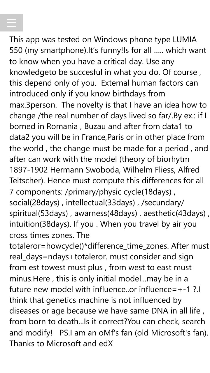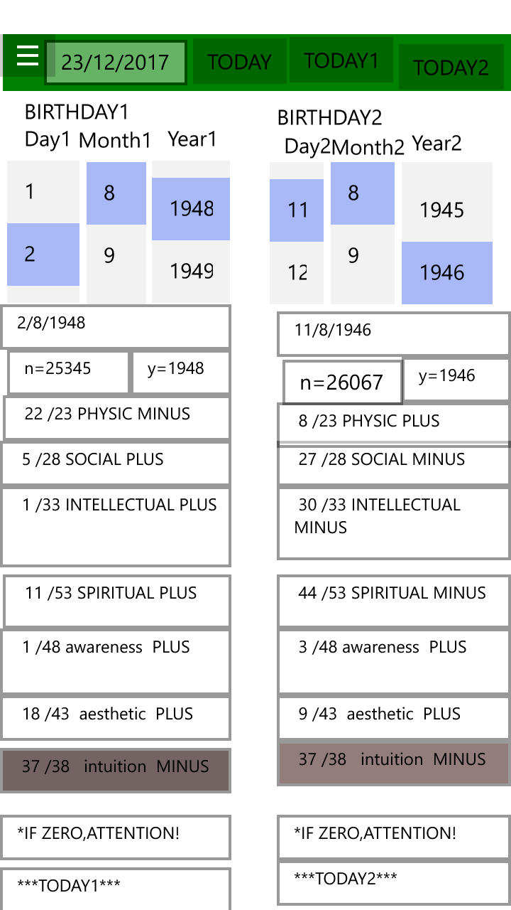 This application is based on theory of biorhytm. (1897-1902 Hermann Swoboda , Wilhelm Fliess , Alfred Teltscher )
