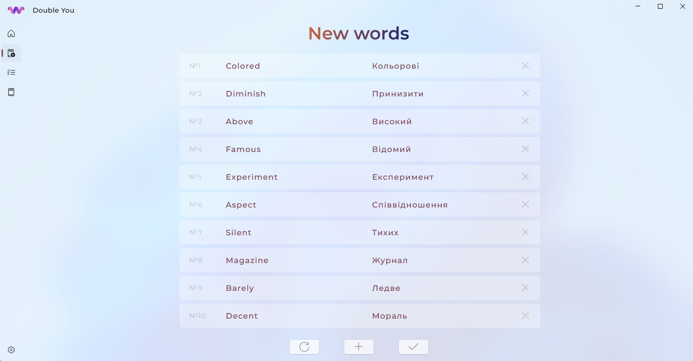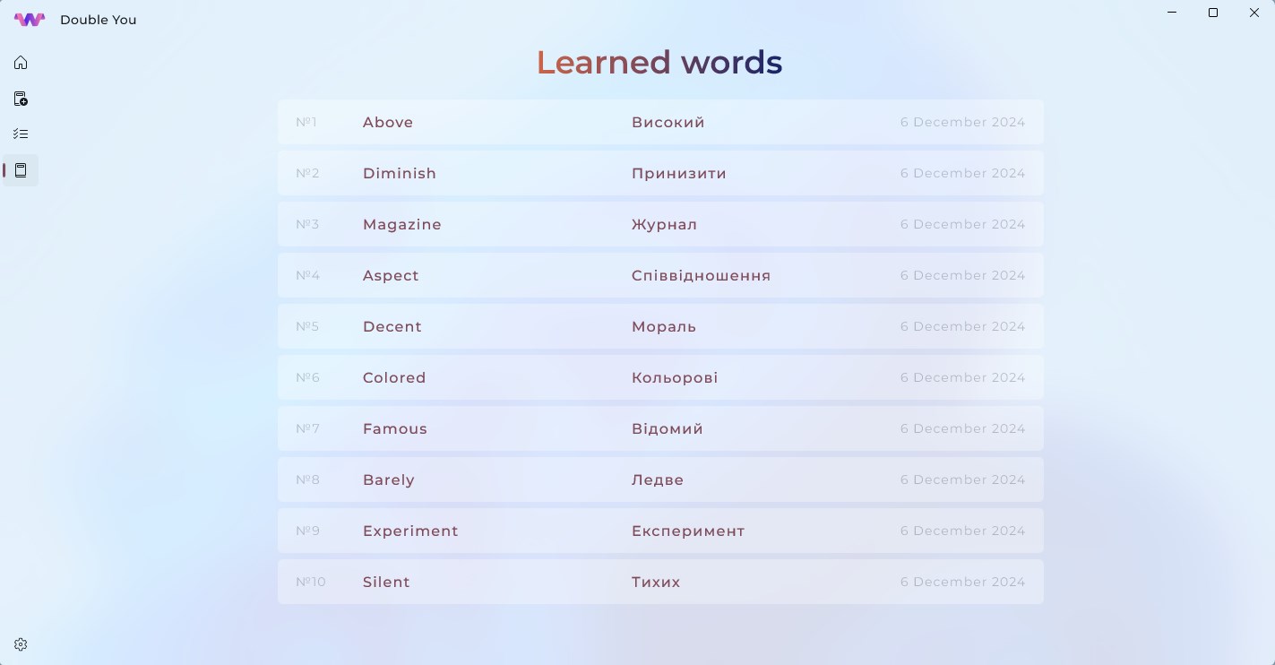 Word learning through flashcardsOption to listen to words with a machine-generated voicePersonal settings to enhance the learning processLocal saving of progress and settingsEasy-to-use and intuitive interface