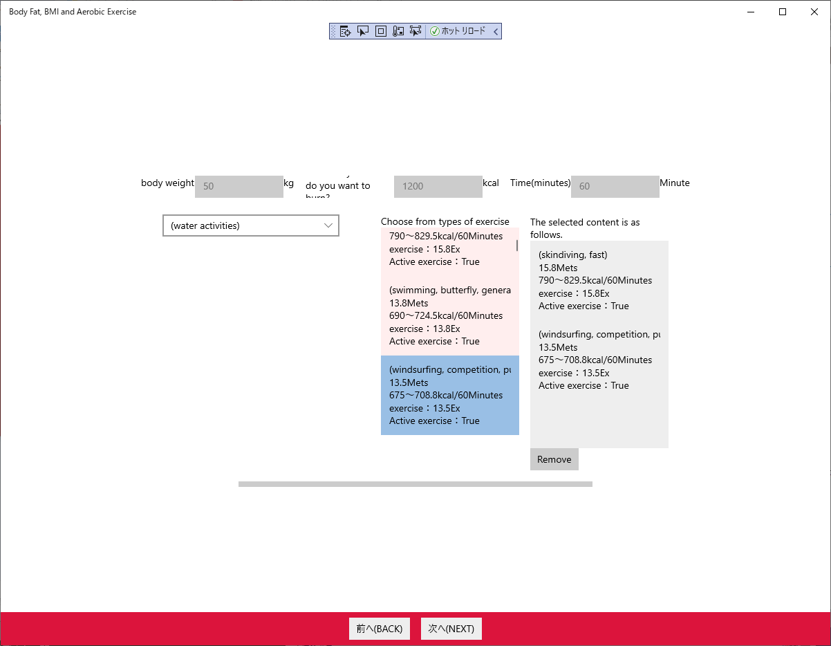 Step 4: Use 体脂肪・BMIと有酸素運動 WinUI3版