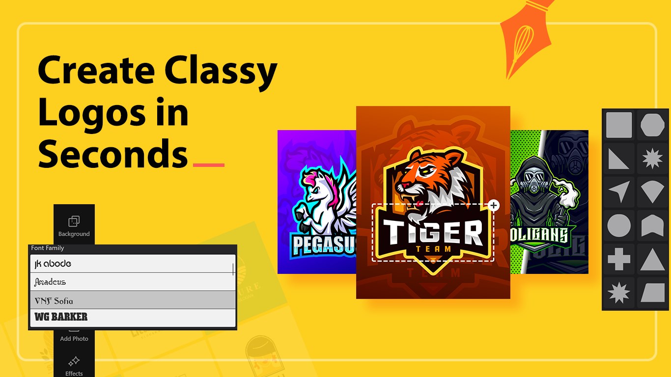 Logo Maker includes a huge collection of categorized Graphic Elements, Shapes, Backgrounds & Textures to create a unique logo in no time.