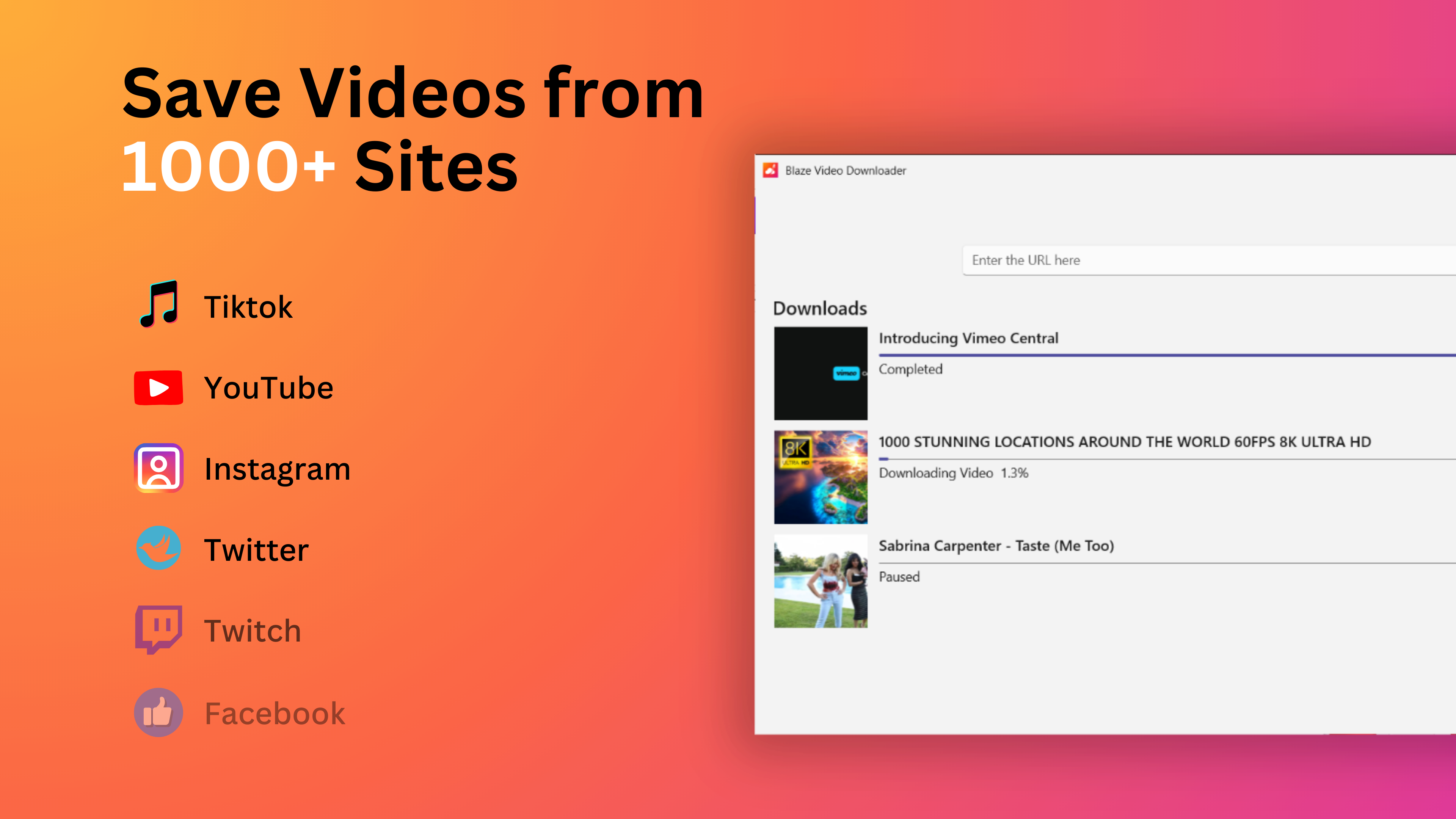 - Support Many Websites: Download from YouTube, TikTok, Instagram, Vimeo and 1000 more sites. The number is rapidly growing.