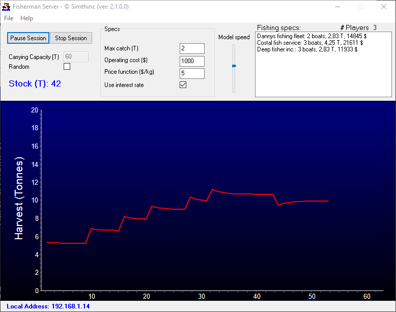 Fisherman is a multi-user game, which means that students will be playing with each other, all connected to the same lake through a local area network (LAN). The game leader will operate the server, a separate application, that hosts the lake.