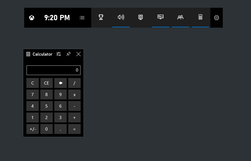 A simple calculator widget for the Xbox Game Bar. Now you can perform calculations without leaving your game.
