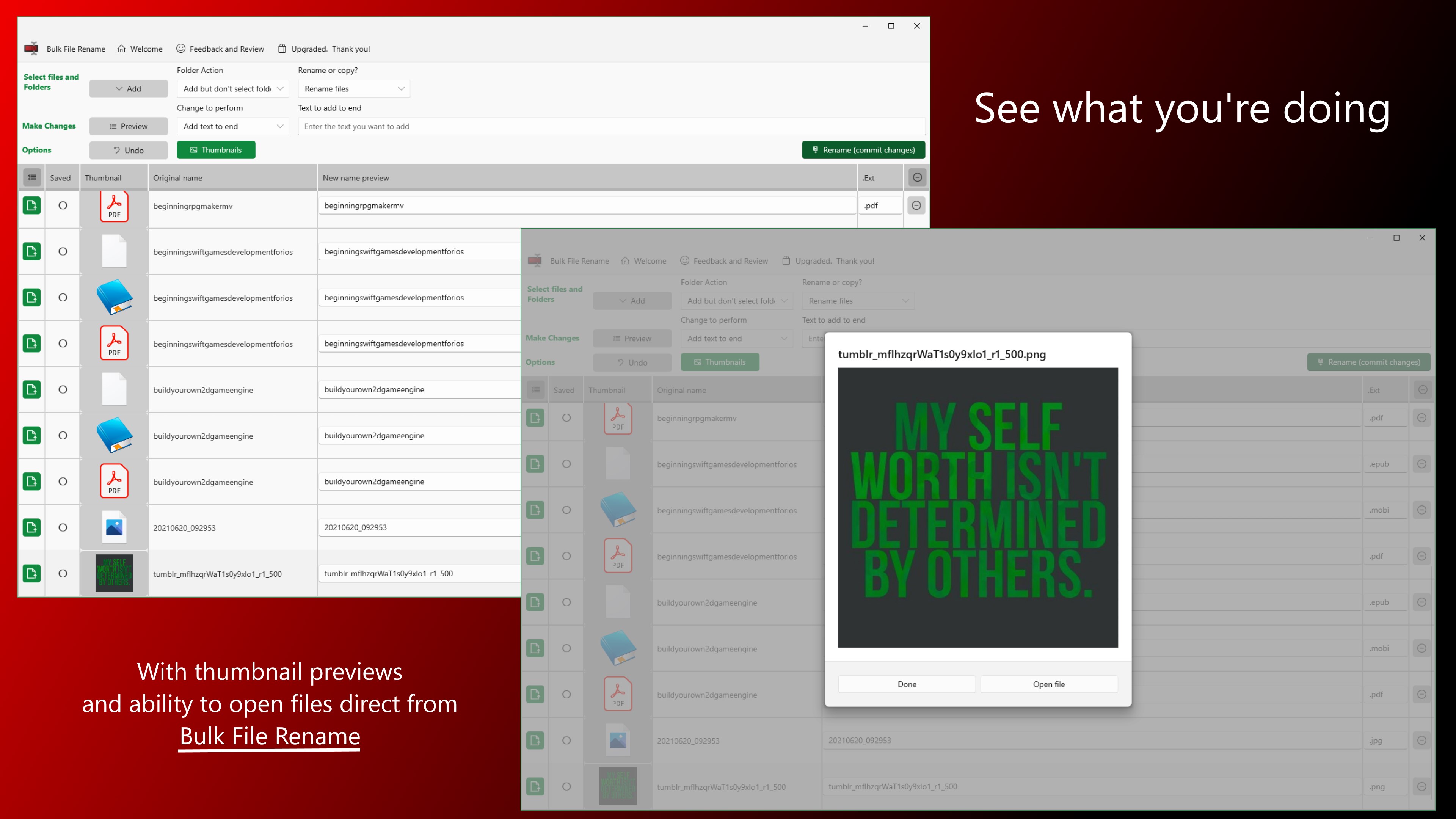 Add final touches with individual file name editing if you wish.
