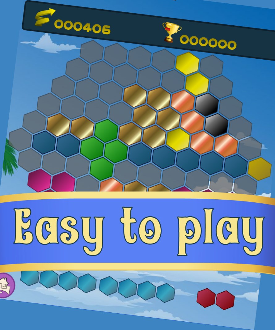 Easy to play yet hard to put down, simply place the hexagons in some free space on the board. Fill a line horizontally or diagonally to remove the line of pieces and create more space. Don’t let the board fill up else its curtains for you.