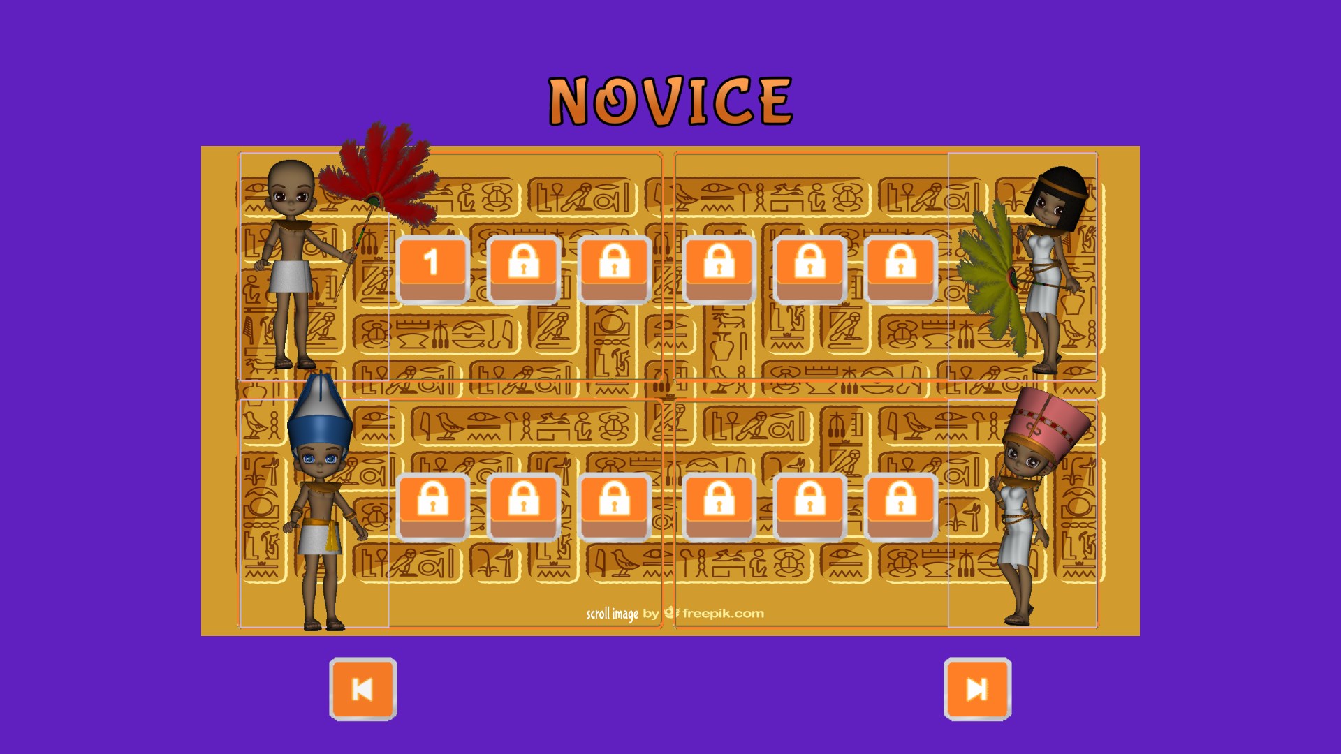 - increasingly difficult levels (12 for novice, 12 for expert, 12 for master)
