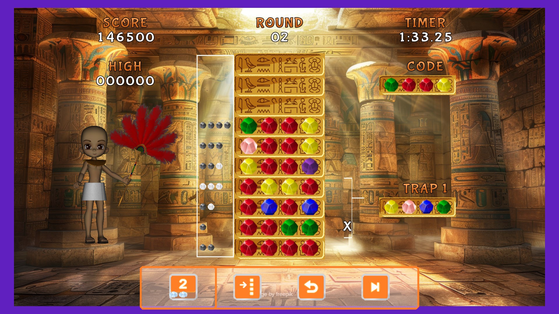 The classic code-breaking game with a twist, making this the most challenging Mastermind clone ever! The object of the game is to solve the hidden code using a series of guesses and deduction based on the clues given after your guess is scored. But watch out for traps that try to fool you. Also, this game uses a timer. Run out of time, and you lose.
