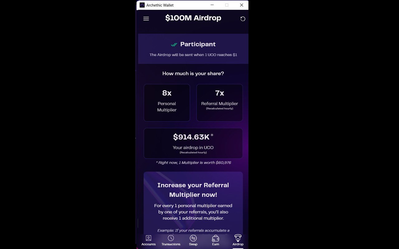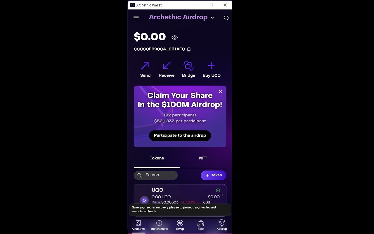 This wallet includes the features of send and receive UCO token, fungible tokens instantly to and from anyone.