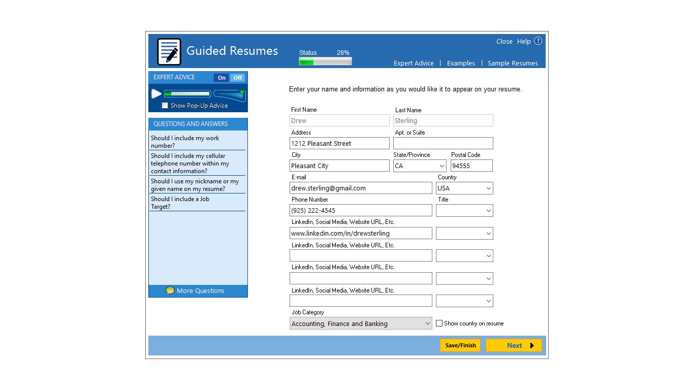 Your answers to easy questions are transformed into the perfect resume. Add, change, or delete at any time.