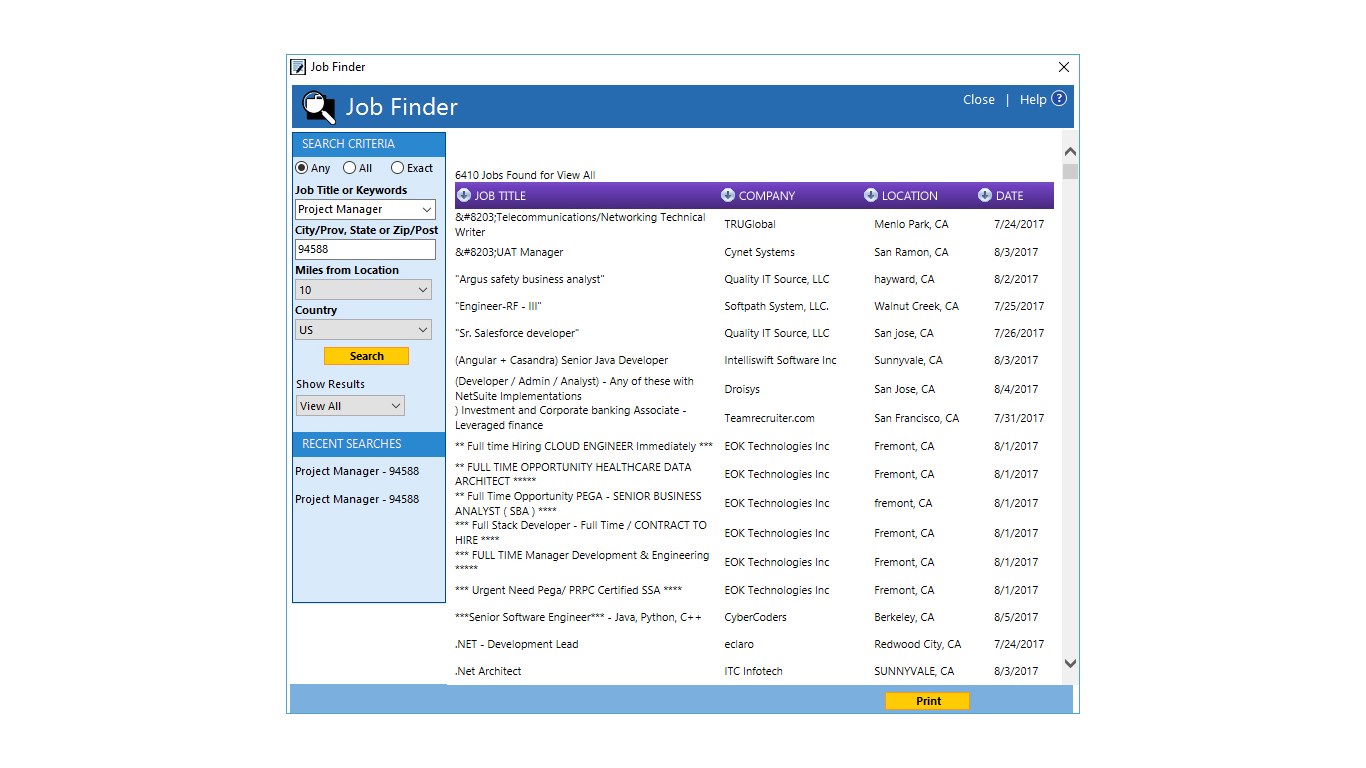 • Job Finder — Search on your Computer