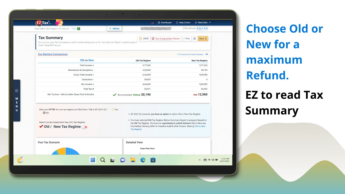 EZTax.in made it so simple that it will build a complex what-if scenario in real-time to show the current refund and new refund possible after recommendations for the coming year.