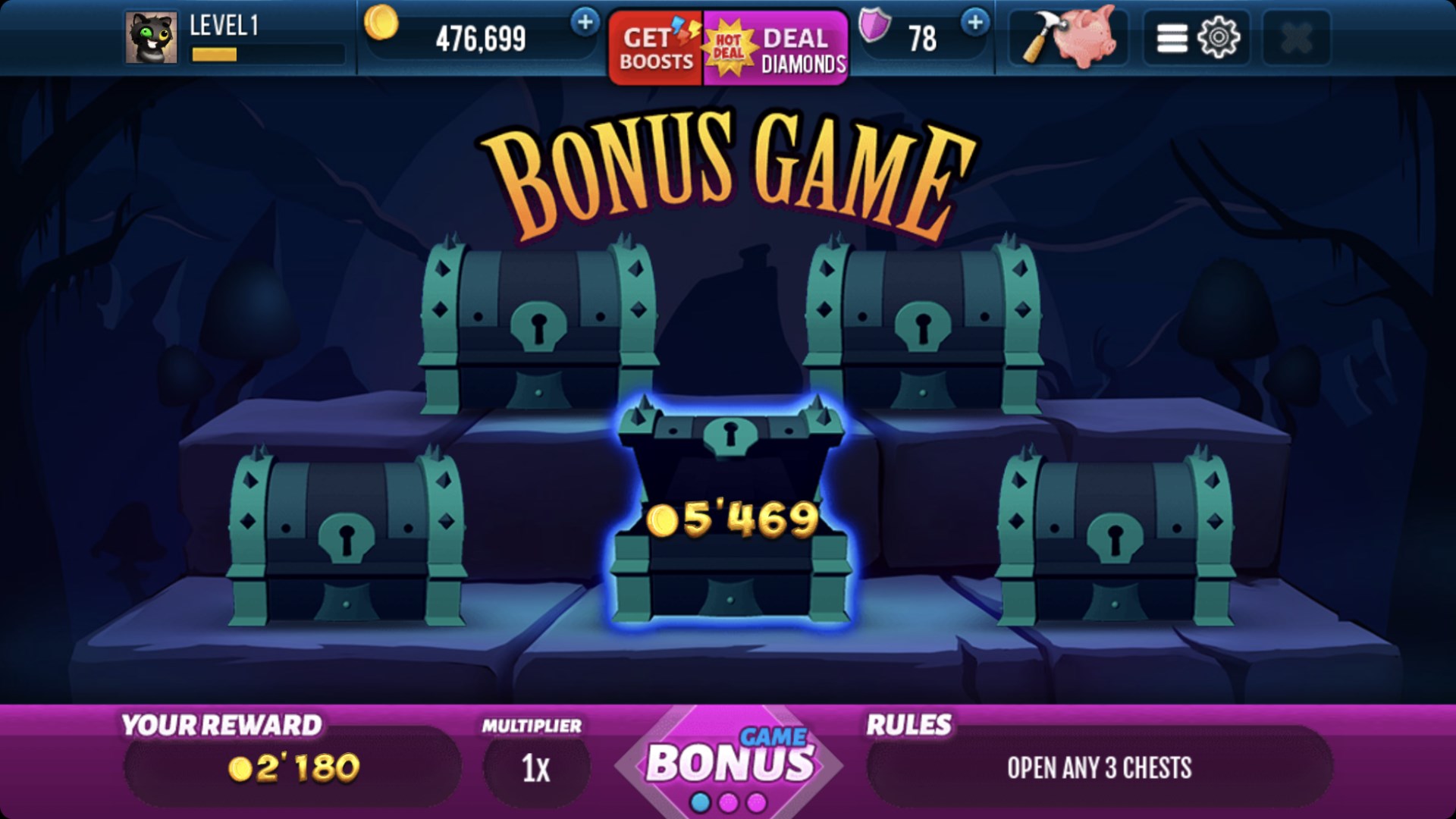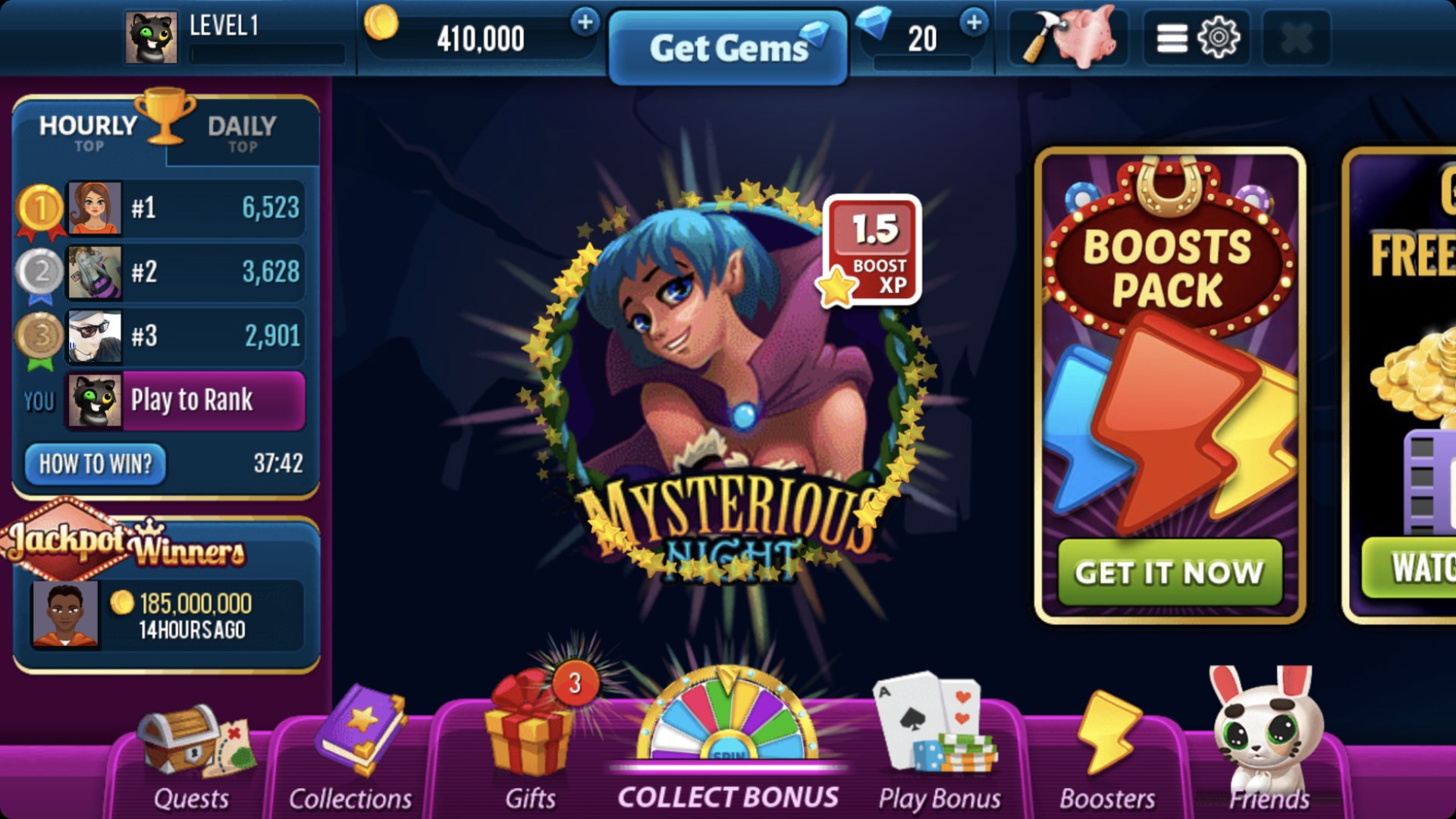 $200,000 chips to get you started!BONUS POINTS - play Bonus Games anytime!GEMS for extra free spins & multipliers!Free chips every 30 minutes for you! Play your favorite slots anytime you want!You Level UP > Rewards UP too!A lot of Bonus Games: Wheel of Fortune, Nice cards, etc.Play & Win Casino Slot Machine Jackpots, Huge Jackpots & ROYAL Jackpots!Collect Daily progressive bonus!Boost your wins up to 5x times!Exchange gems for coins, bonus points & boosters!