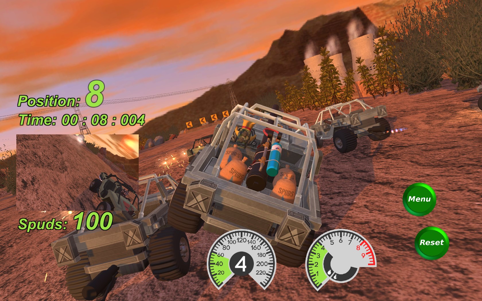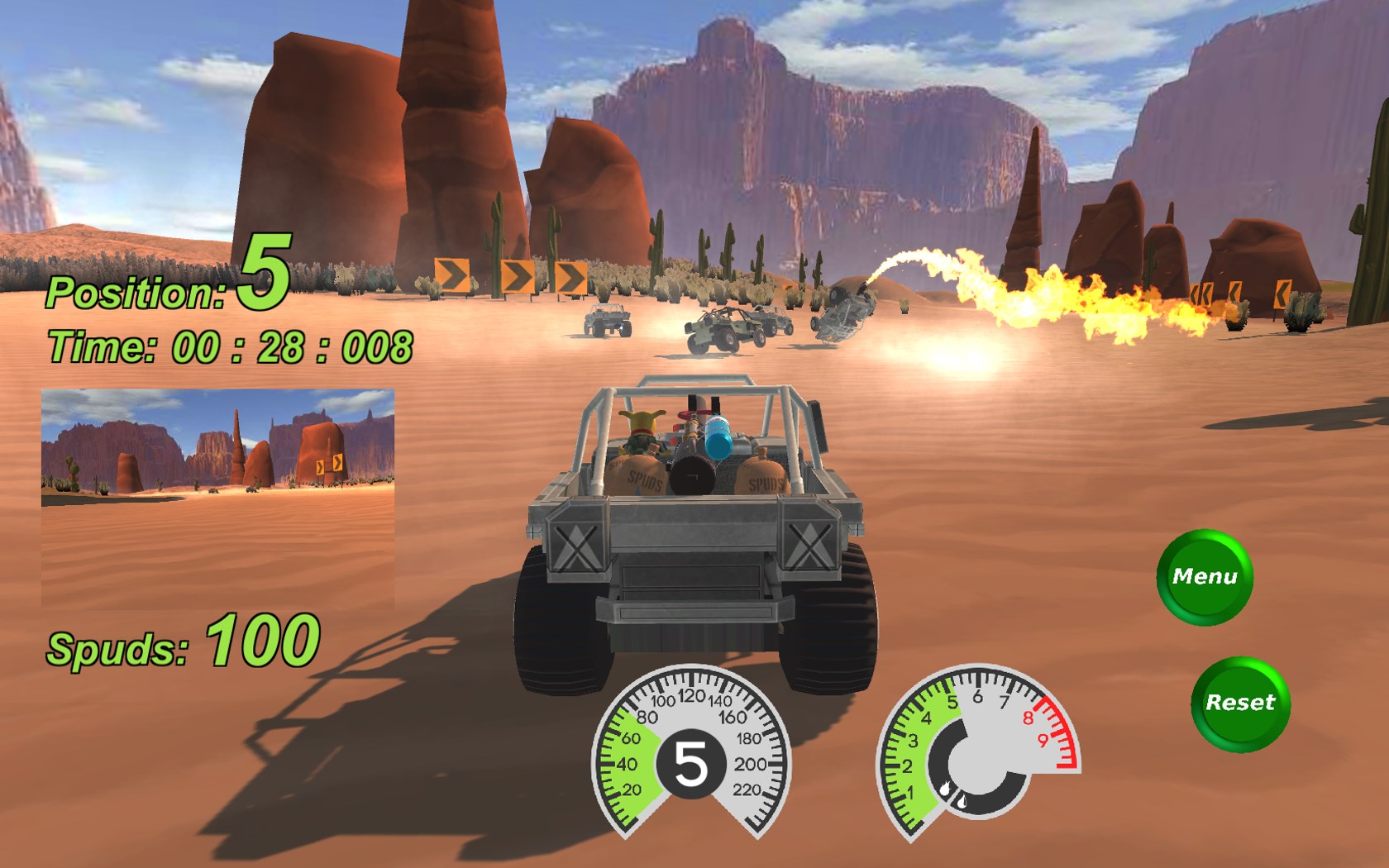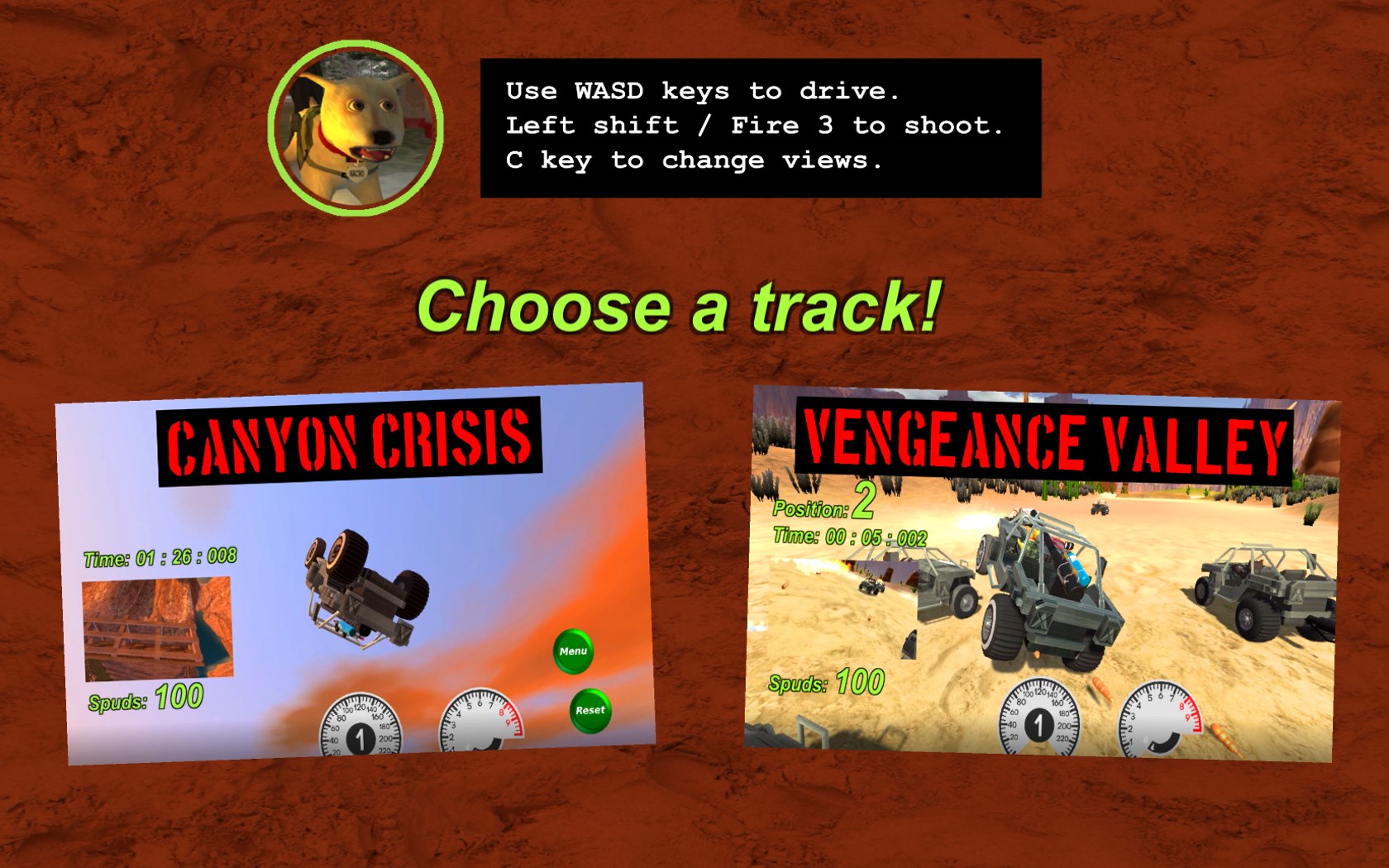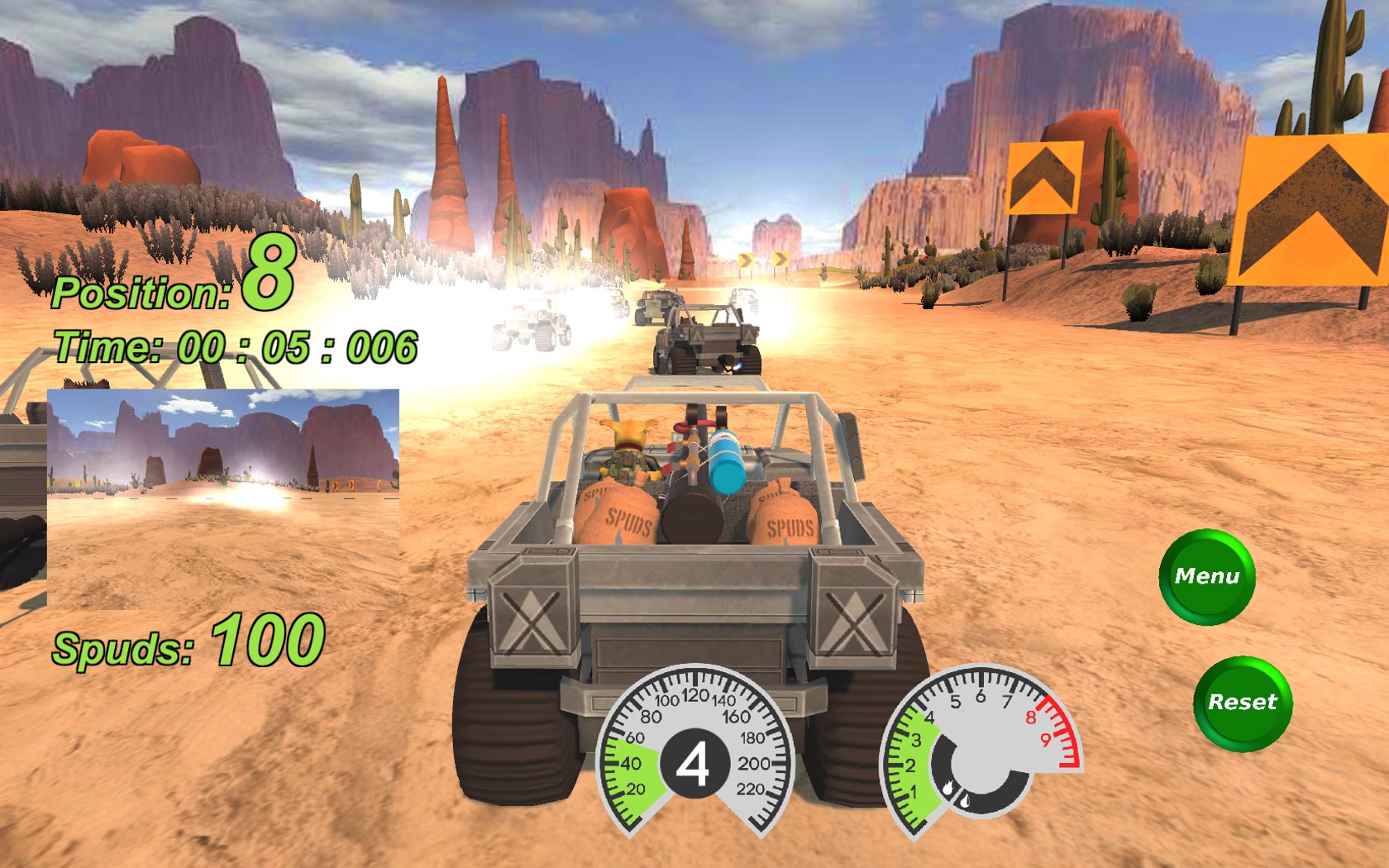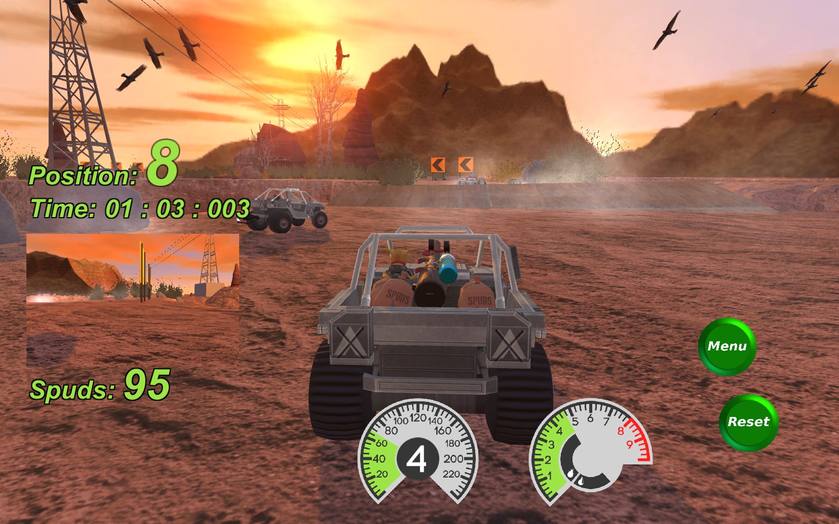 Desert dune buggies, dogs, cats, and rabbits race to the death in this fast-paced, funny racing game set somewhere in the US southwestern desert.