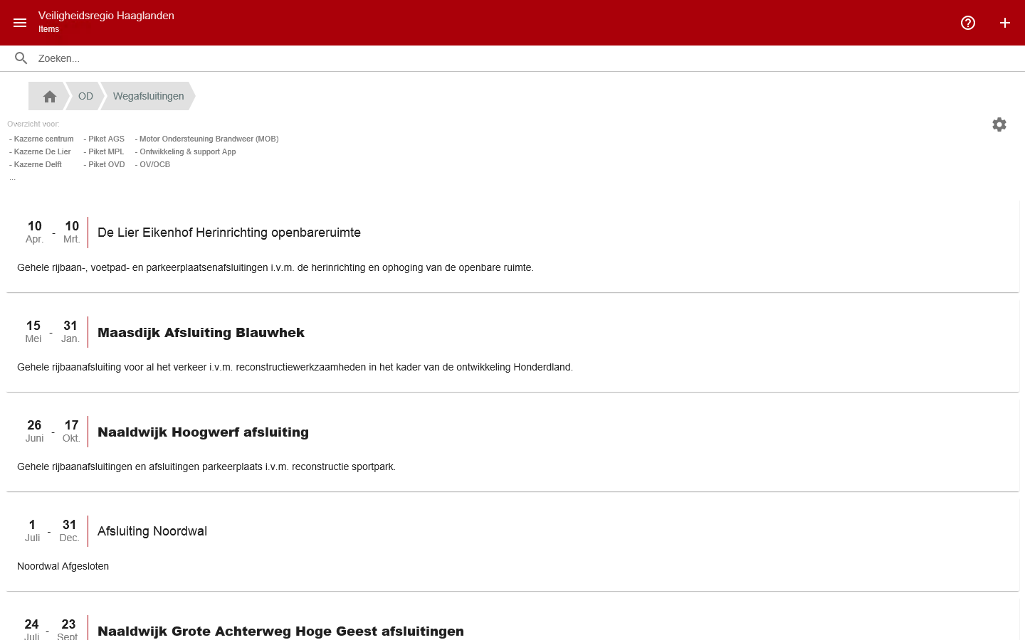 Het regio omgevingsbeeld wordt bijgewerkt door het Operationeel Centrum Brandweer (OCB) Haaglanden.