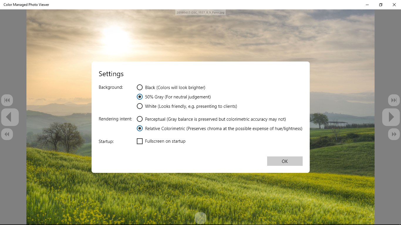 Color managed photo viewer that detects your calibrated monitors profile and the image color space to render a perfectly color correct image. Supports JPG/PNG/GIF and sRGB/AdobeRGB/ProPhoto image color spaces.