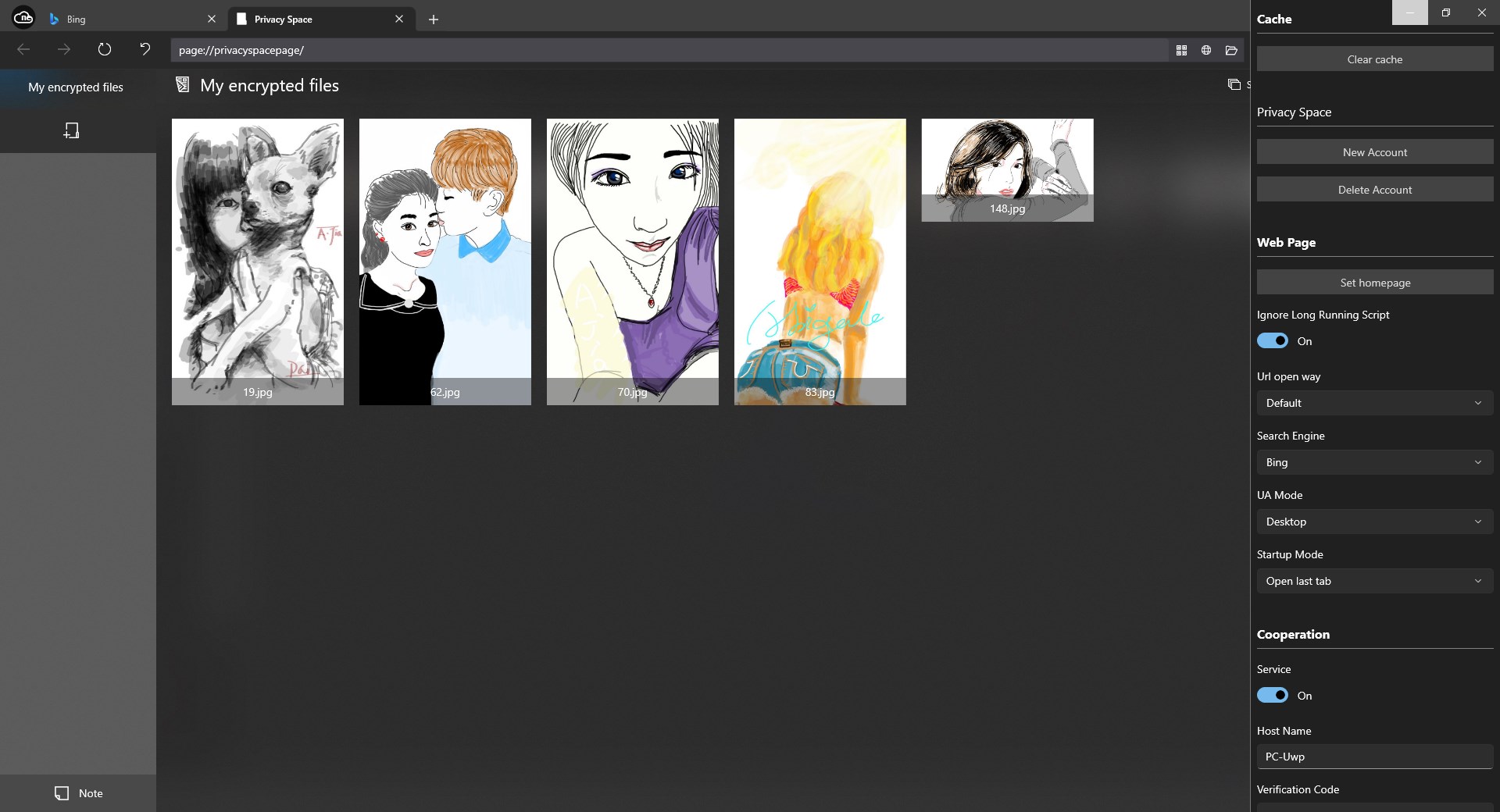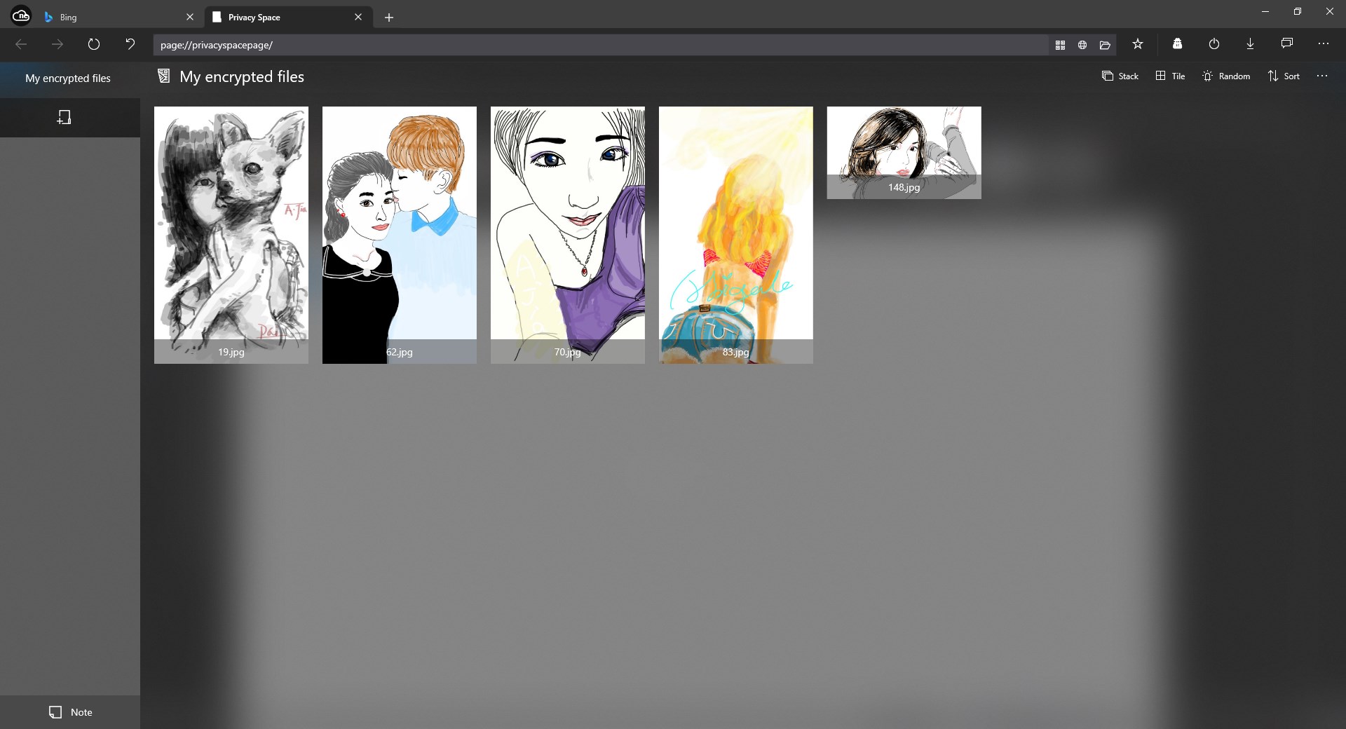 Privacy space for encrypting file