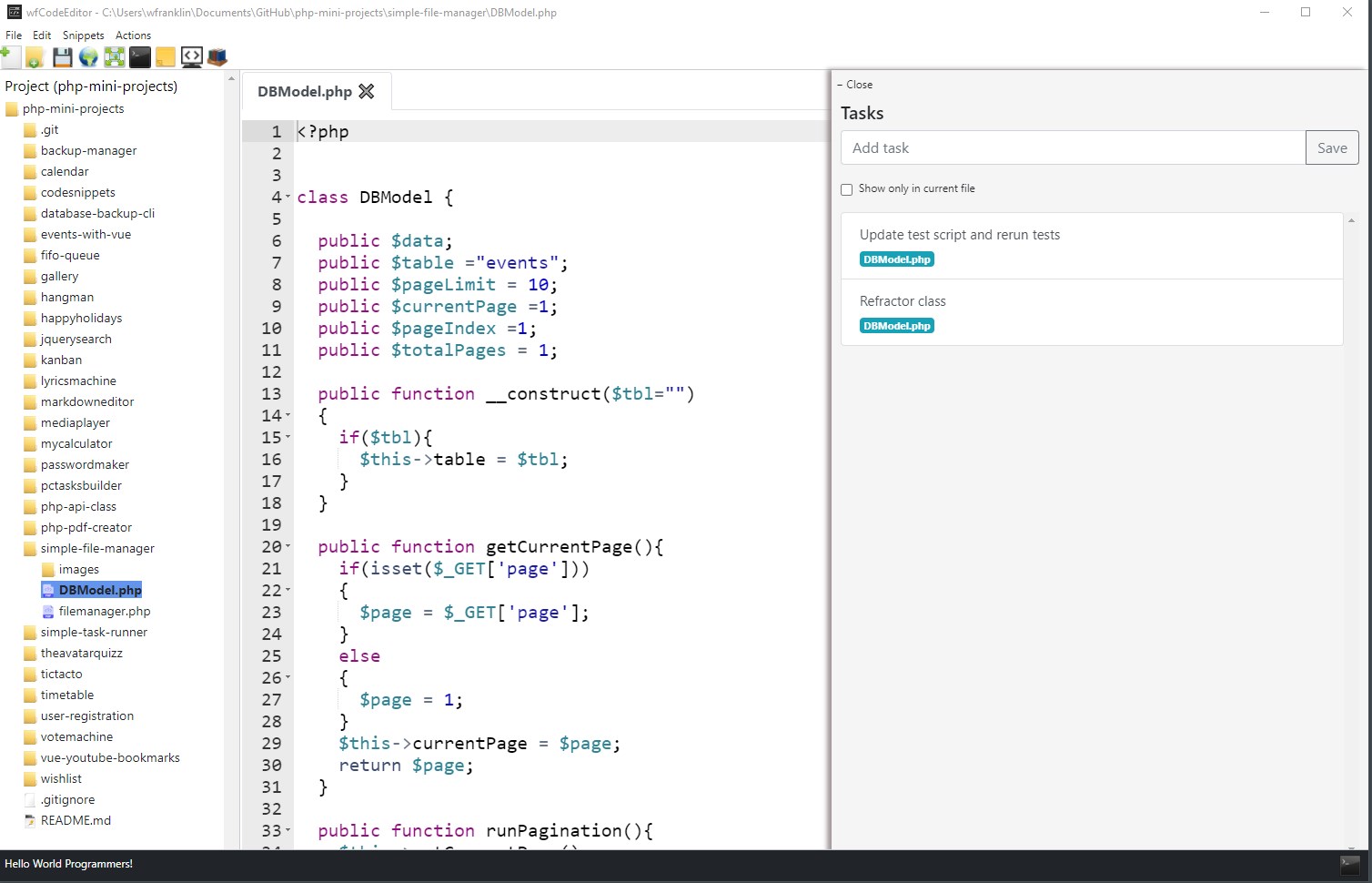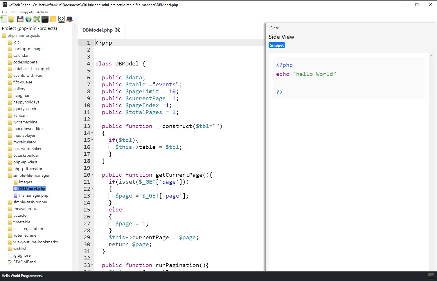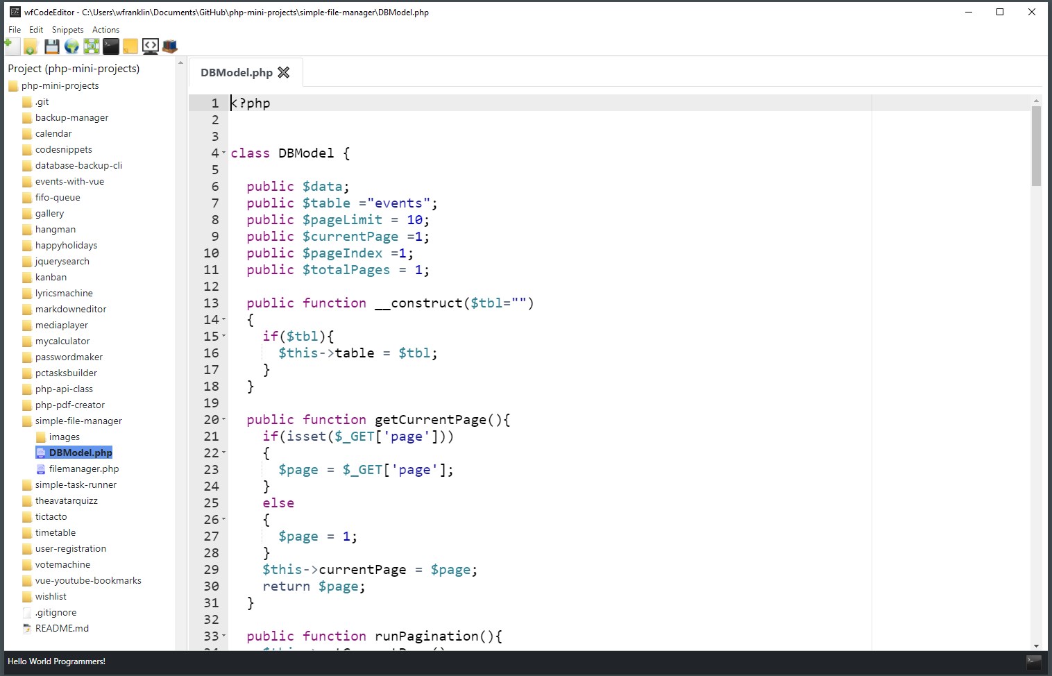 With wfCodeEditor you can edit multiple files types including PHP, Java, Javascript, and Python files. A combination of awesome features bridges the gap between simple text editor and full fledge IDE. Fully open source and free to use.