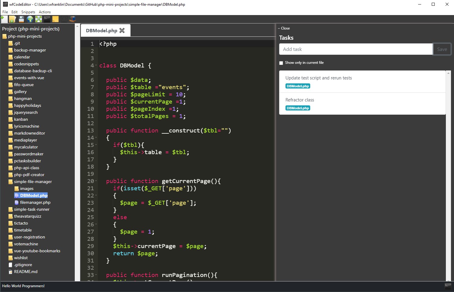 A simple code editor for all your programming needs. Edit and manage your programming projects with this neat and simple code editor.