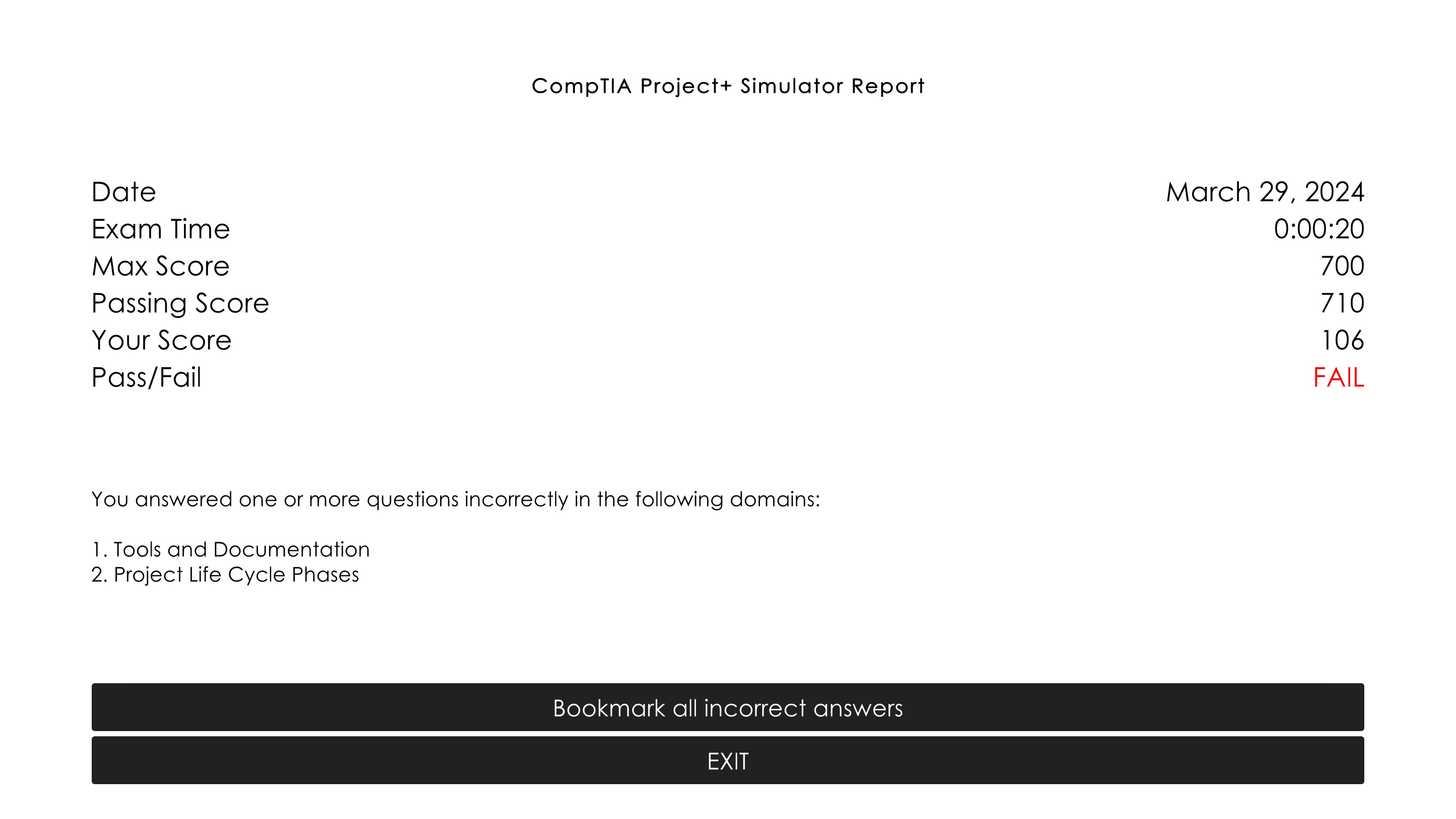 The simulator mode is created to replicate the actual exam rules to help you go through a mock exam prior to your actual exam.