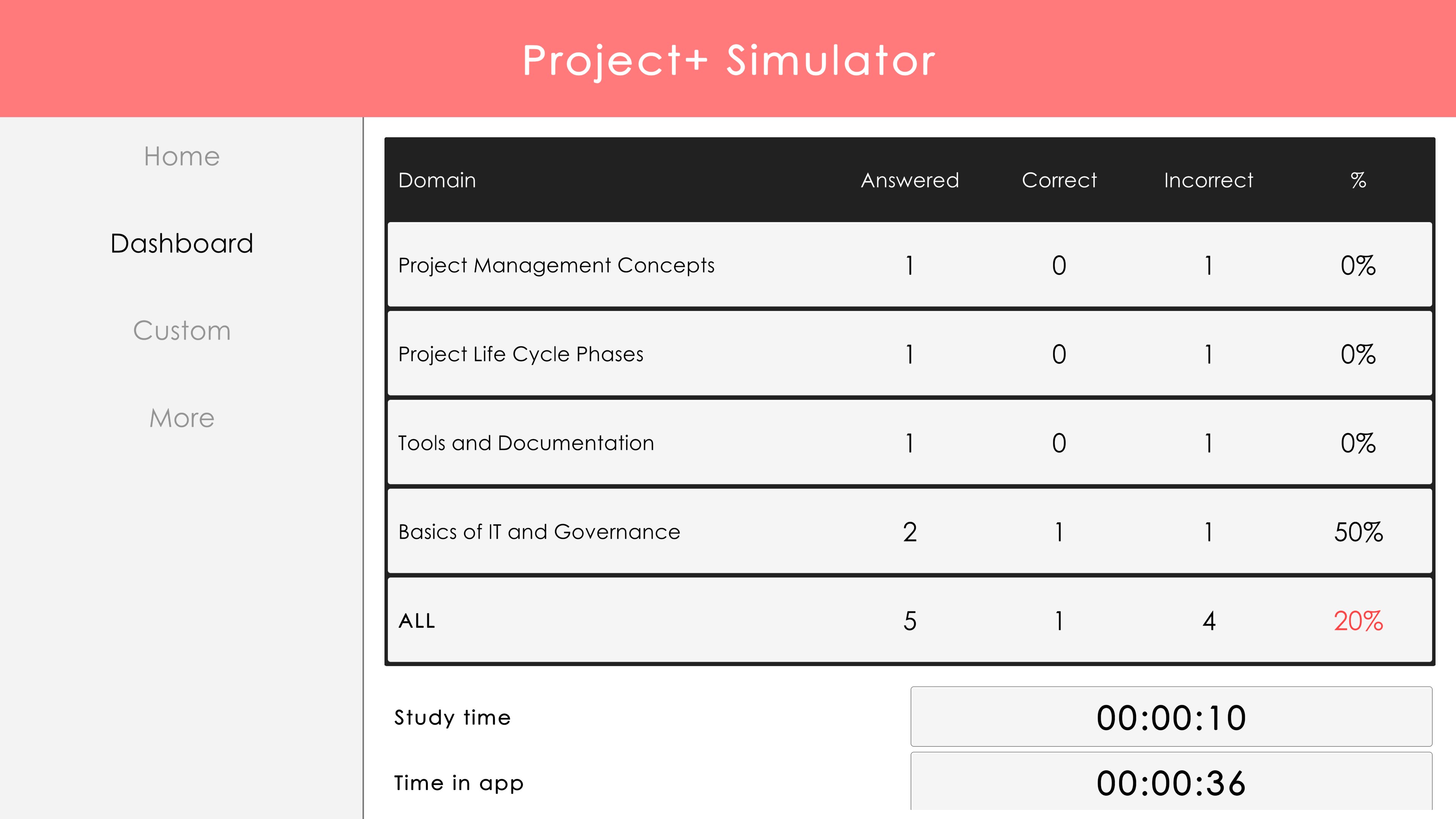 Track your progress including which domains you need to focus on, how many mock exams you've passed or failed, your total study time and much more.