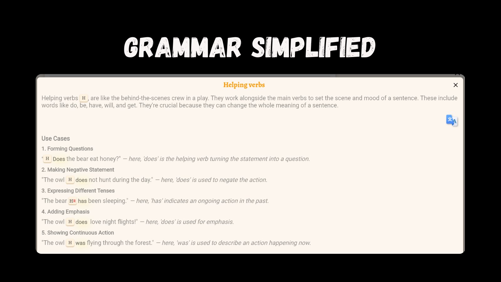 — Easy Grammar: We break down tricky points into bite-sized, understandable chunks with visual tags that spotlight key patterns.