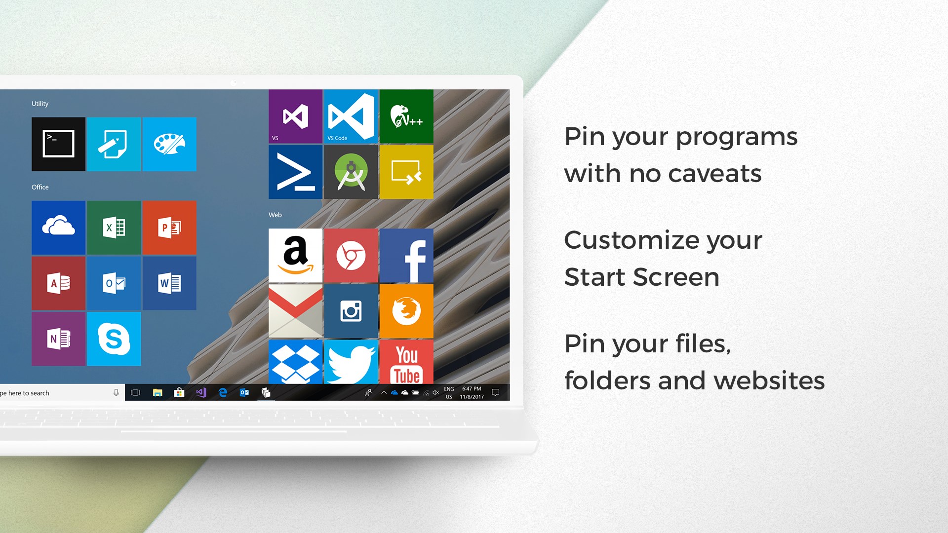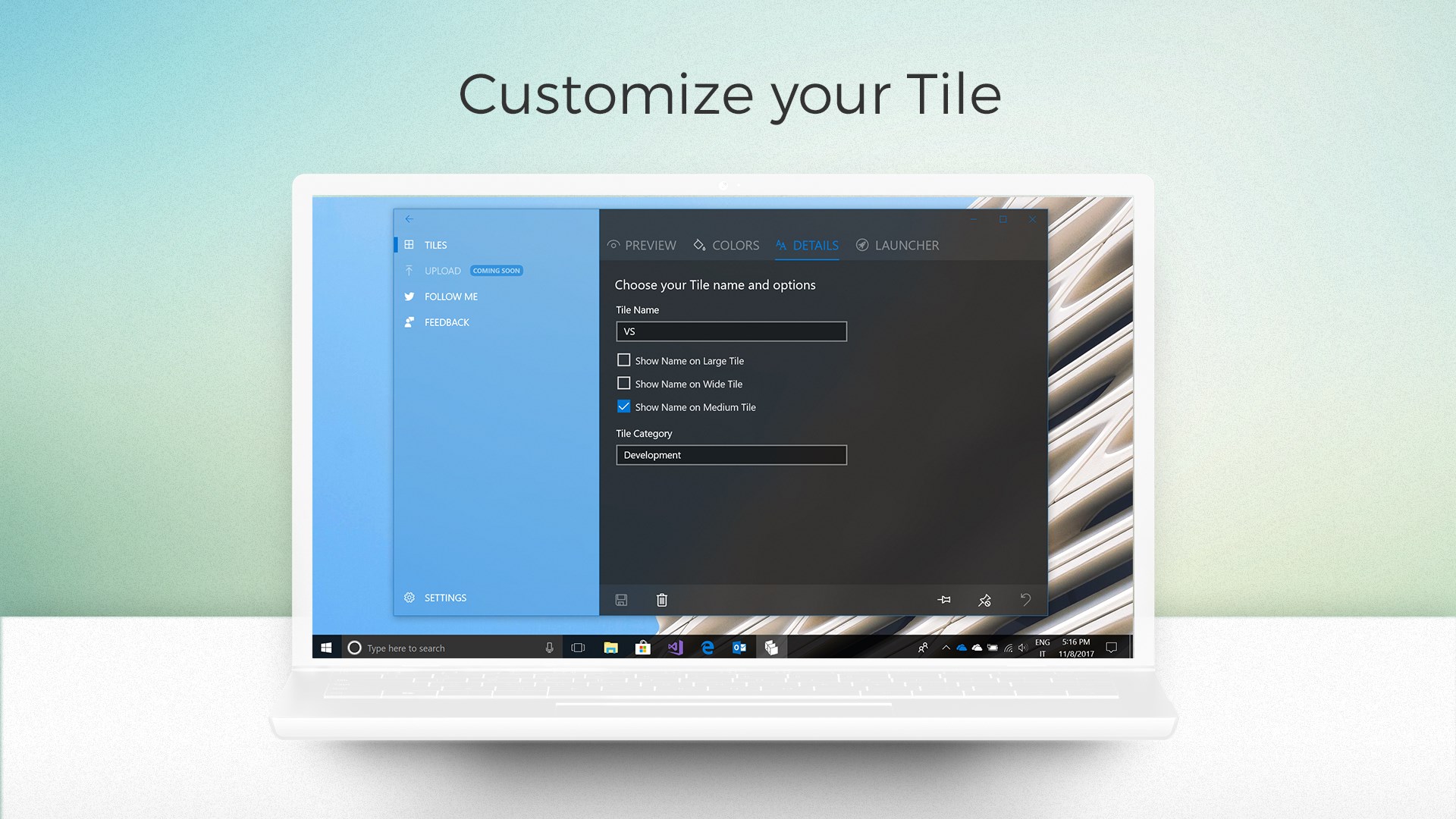 EdgeTile Creators is the first Universal Windows Platform app to allow making custom Tiles for files, executables, folder and websites.