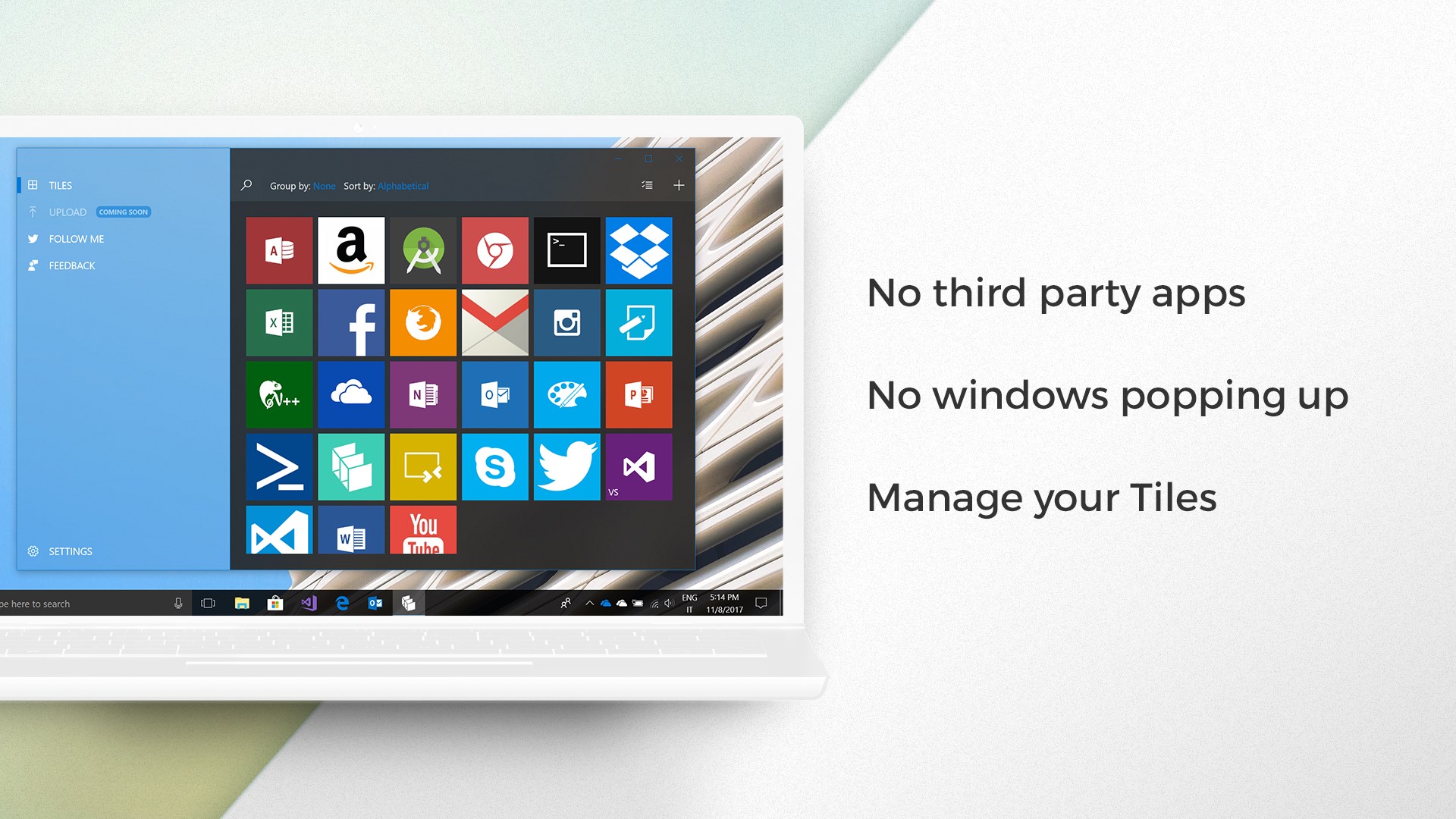 No Windows popping up, no third-party app to be installed: just pin your favorite Tiles and make your Start Screen looks gorgeous!