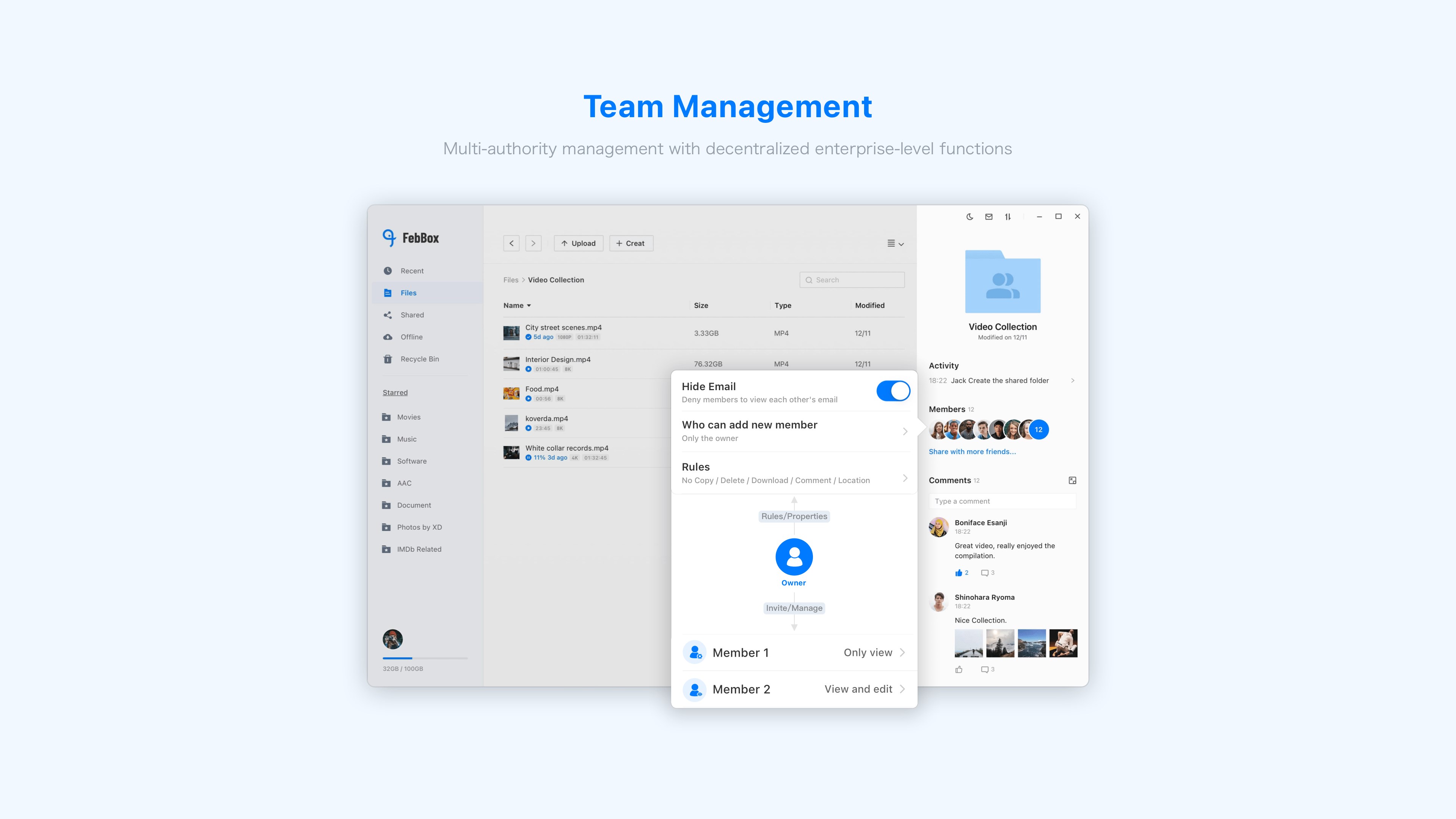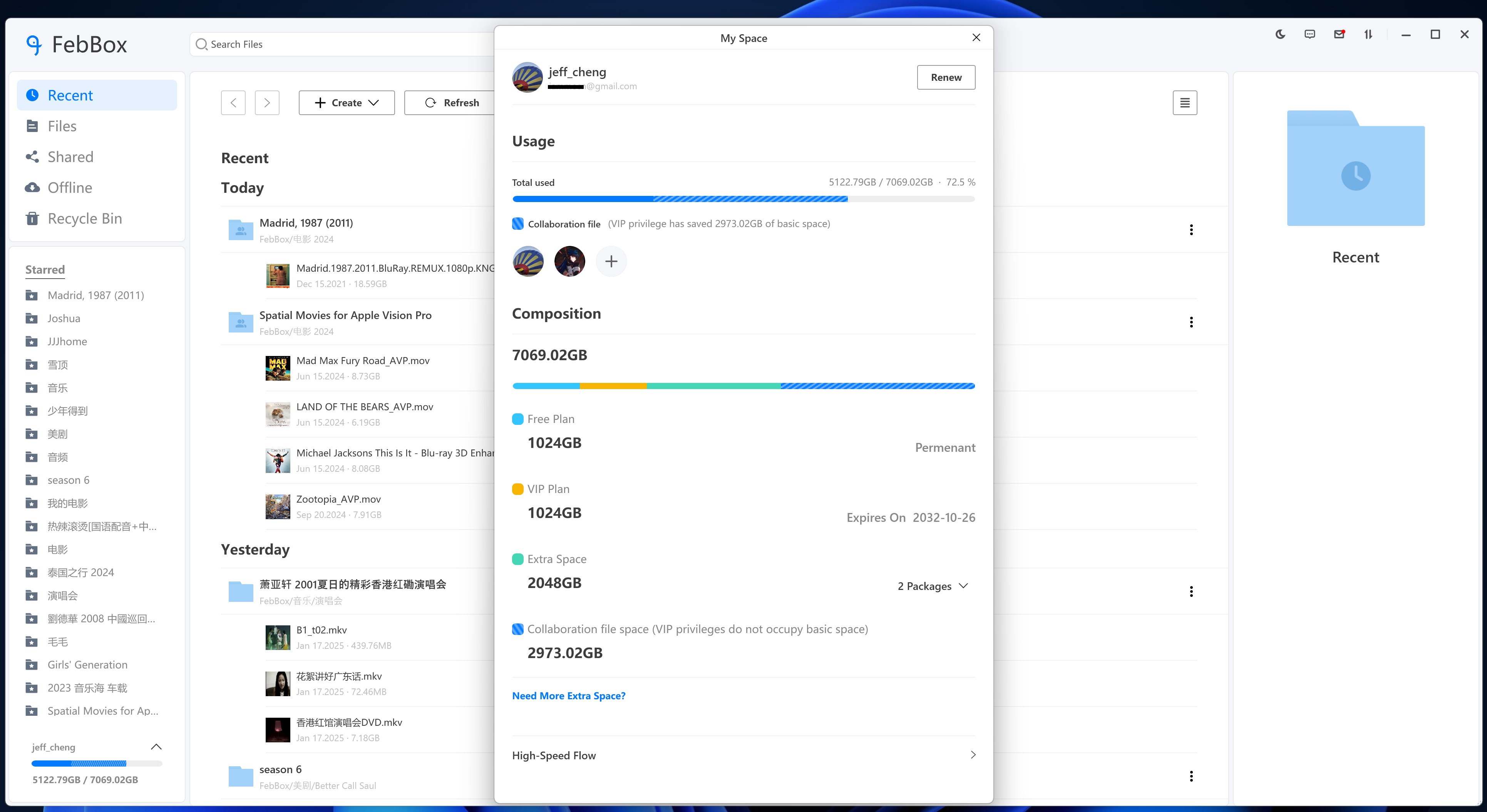 With FebBox, anyone can upload and transfer files to the cloud and share them with anyone. You can back up and sync documents, photos, videos, and other files to cloud storage, and access them from any device anytime, anywhere. With advanced sharing features, no matter the size of the document or file, it can be easily shared and sent to friends, family, and colleagues.