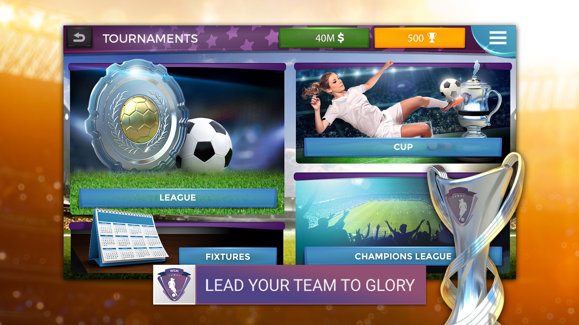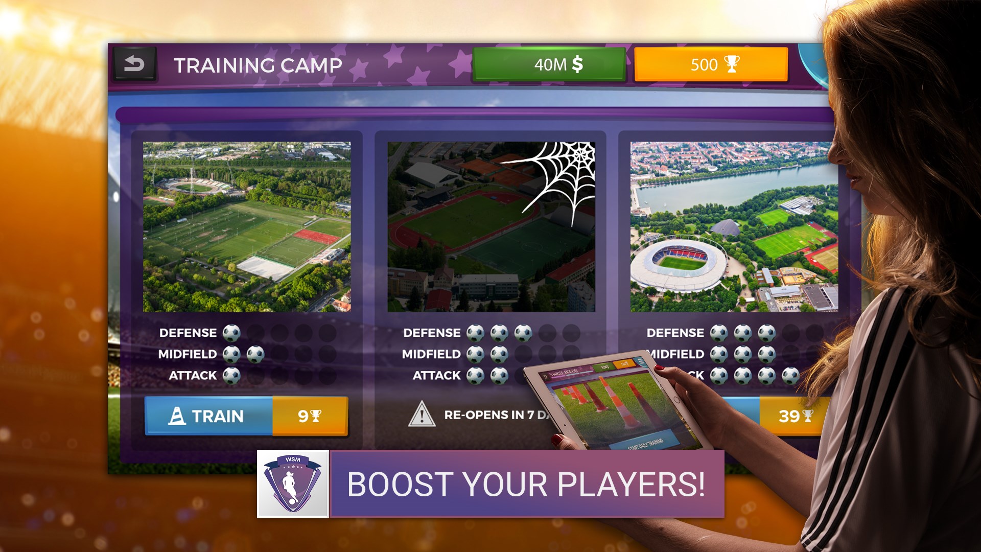 Choose your favorite club from one of the numerous women's football leagues around the world. Manage famous clubs like Barcelona, Arsenal or Lyon with authentic football players and recruit the most exciting stars to strengthen your team. Compete in the national pro football leagues, cup and Champions League and other famous leagues such as NWSL, USWNT, FA WSL, UEFA Women’s Champions league and take your top eleven women's football players team to glory in this one of a kind – WSM - The best Soccer Manager game.