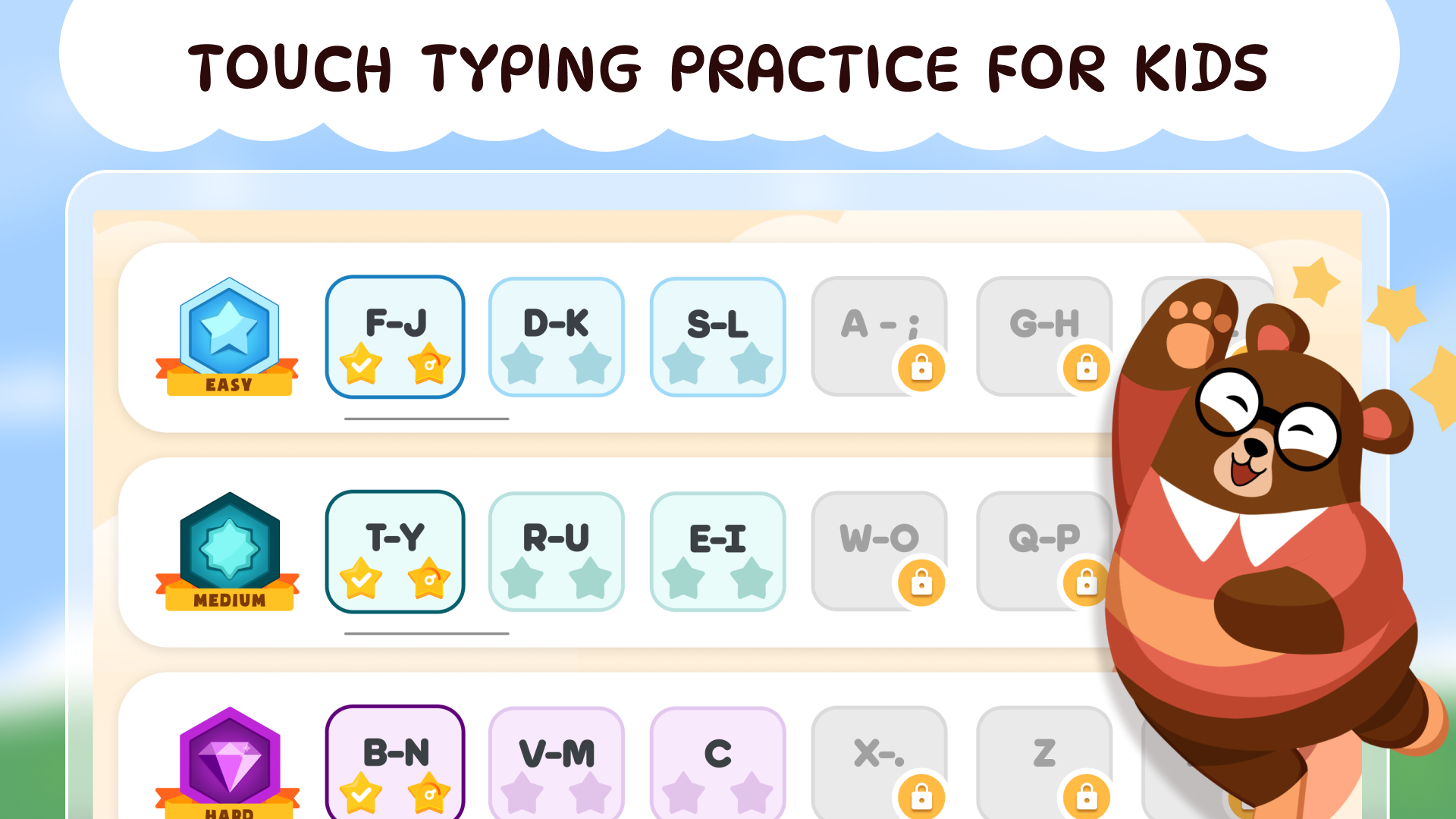 The app offers typing drills for all letters, allowing kids to practice and master each one systematically.