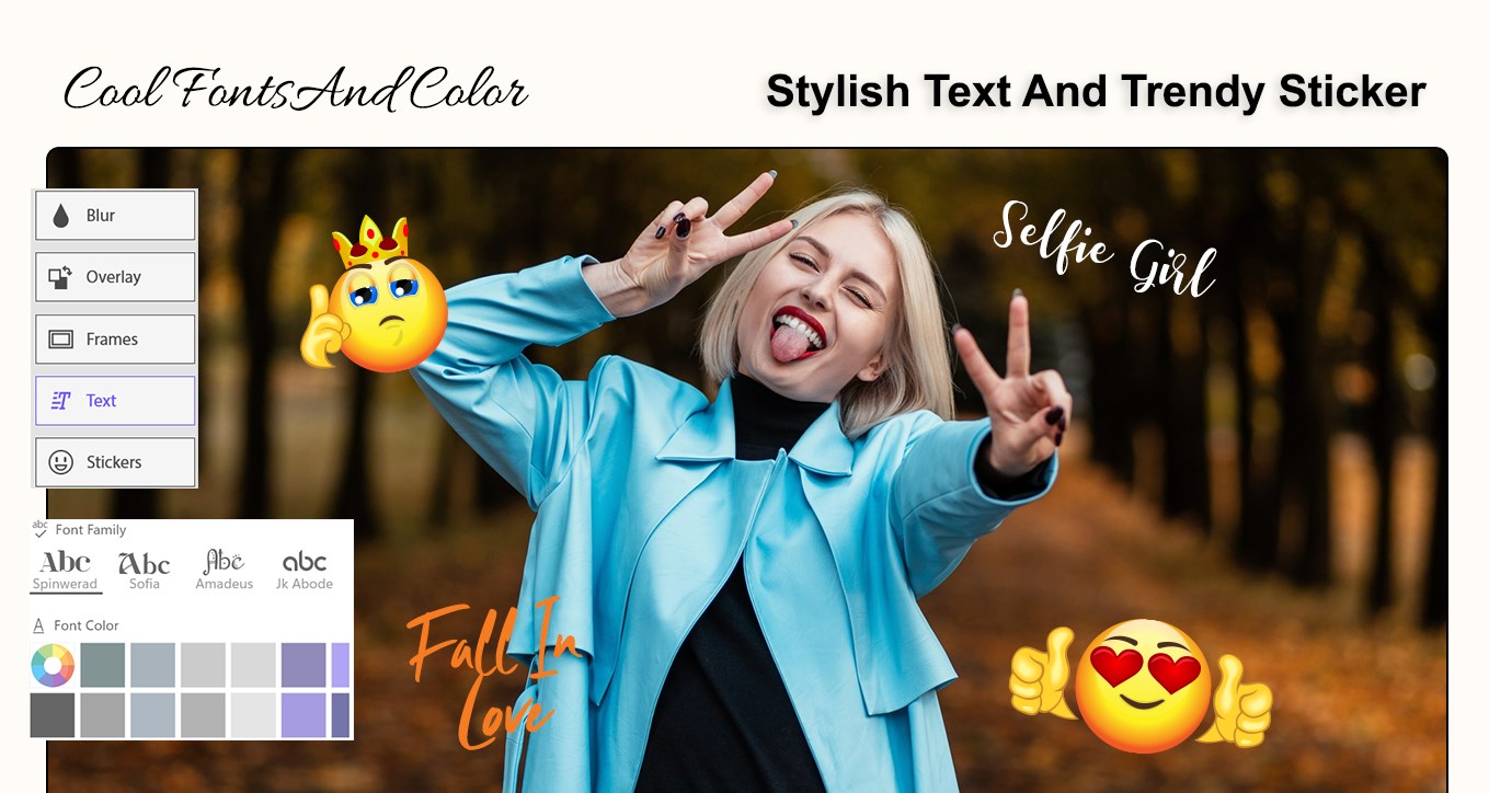 Unique stickers and custom text adding feature makes this app more interesting