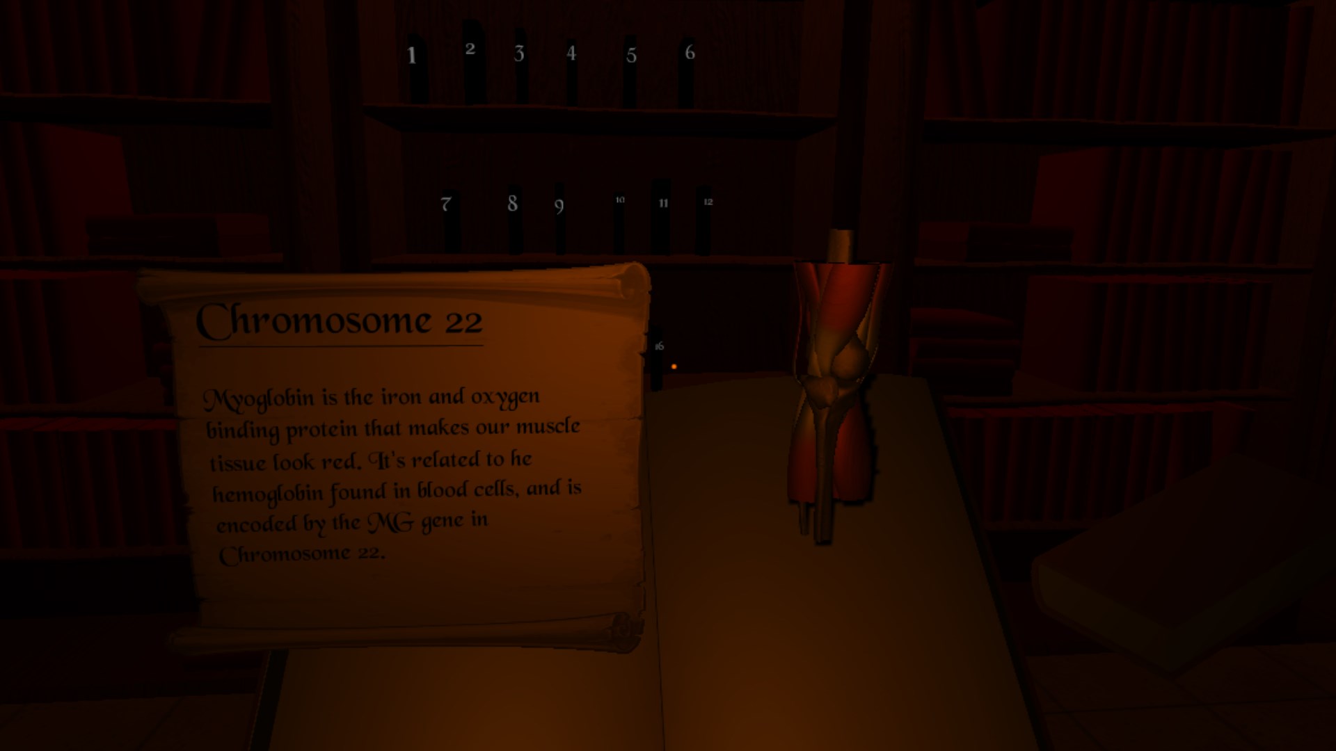 But just because you’re underwater, it doesn’t mean you cannot take a side trip to an ancient library that holds the secrets to your genetics and chromosomes. Each of the ancient manuscripts will tell you what each of your 23 chromosomes does and beware the floating head and the hovering eyeballs.