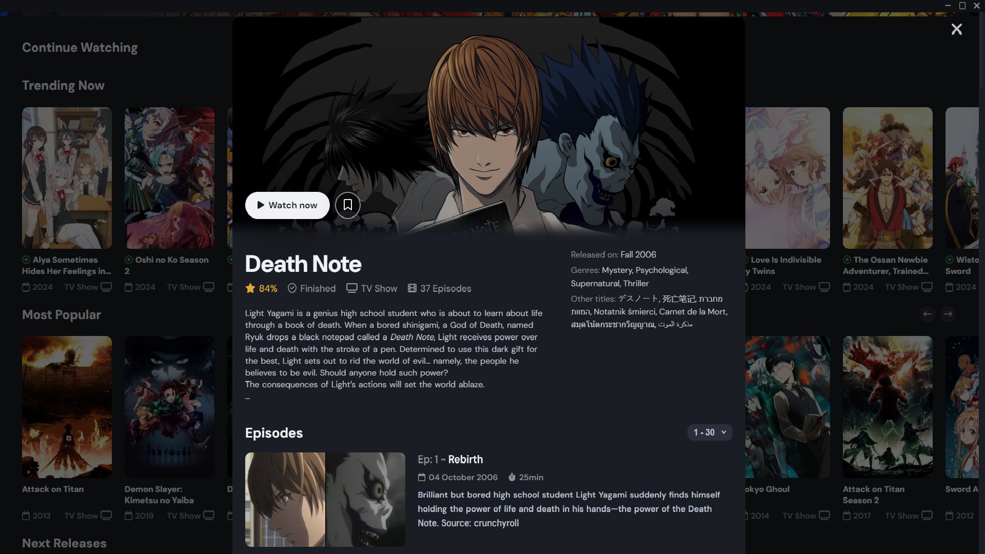 Simple and easy to use anime streaming desktop app without ads.