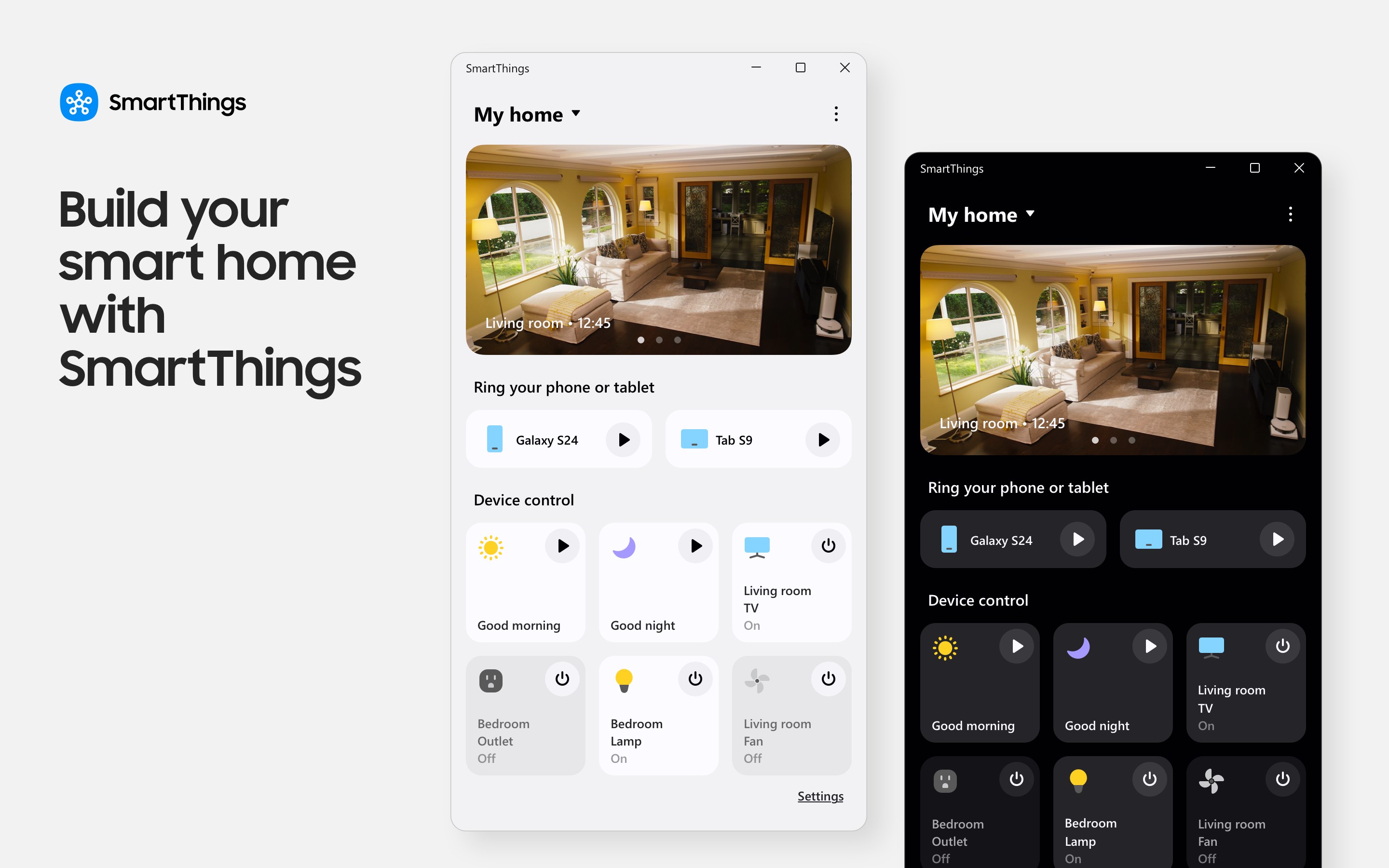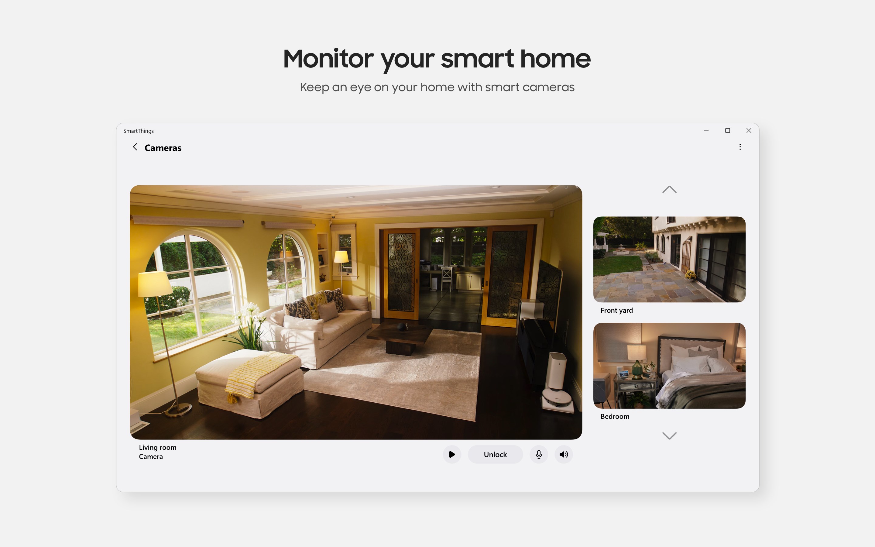No matter where you are, you can see and control a variety of devices like Samsung home appliances, TVs, Ring, Nest, Philips Hue, and more.