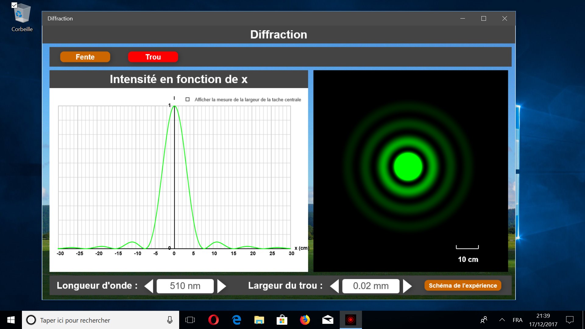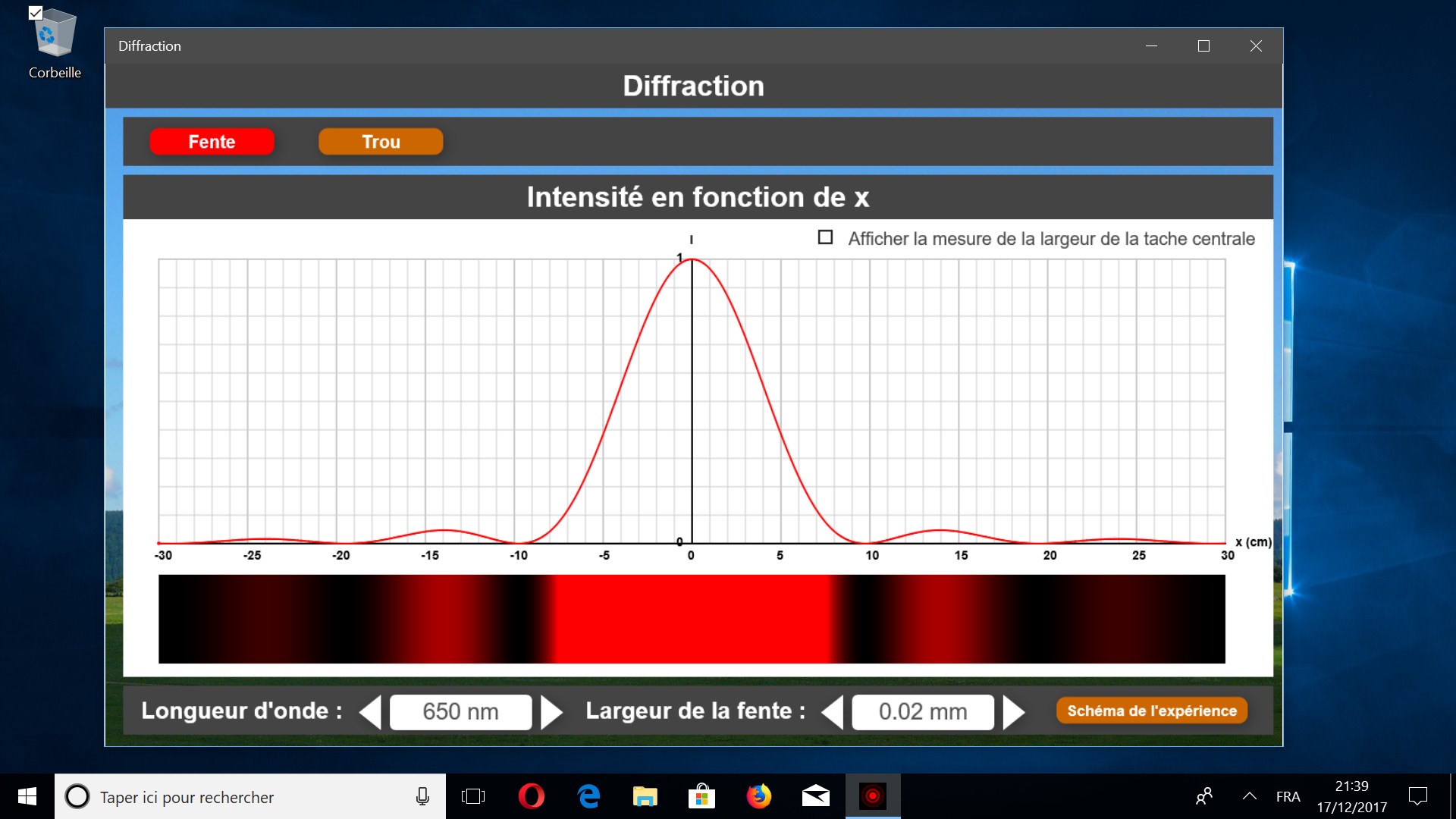 Il est possible de modifier la longueur d’onde du laser et la largeur de la fente ( ou du trou ).
