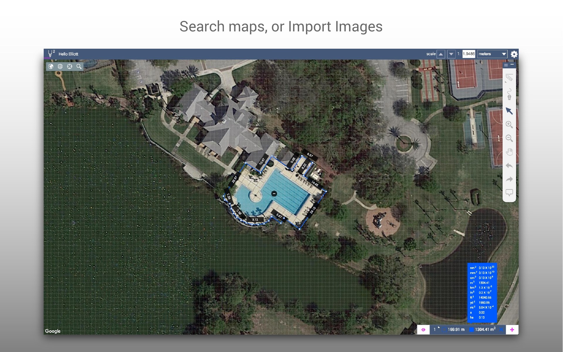 Results of the area calculator are displayed in imperial and metric systems, increasing the calculator's utility and removing the need to convert between different square area measurements. This, alongside the calculators precise drawing tools and magnification, ensures that irregular area’s of every size are calculated accurately.