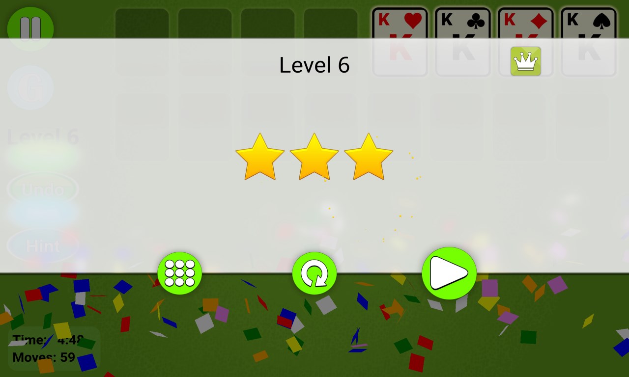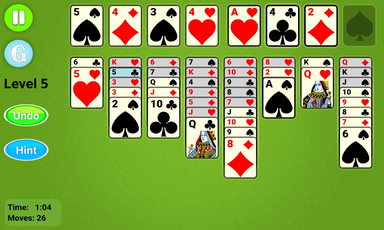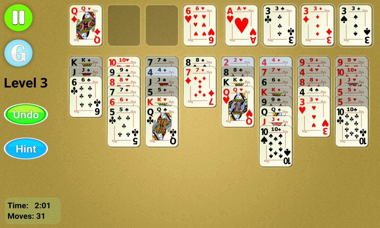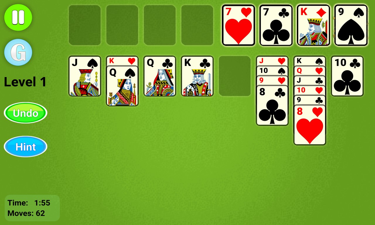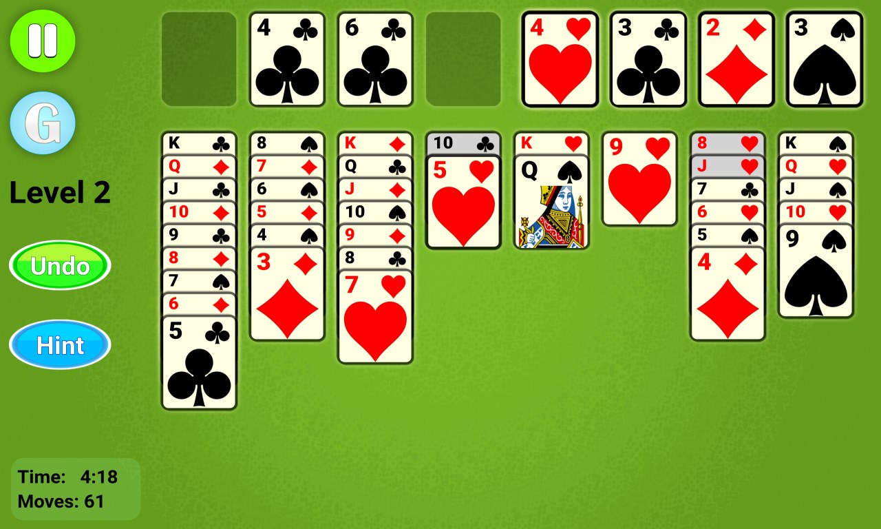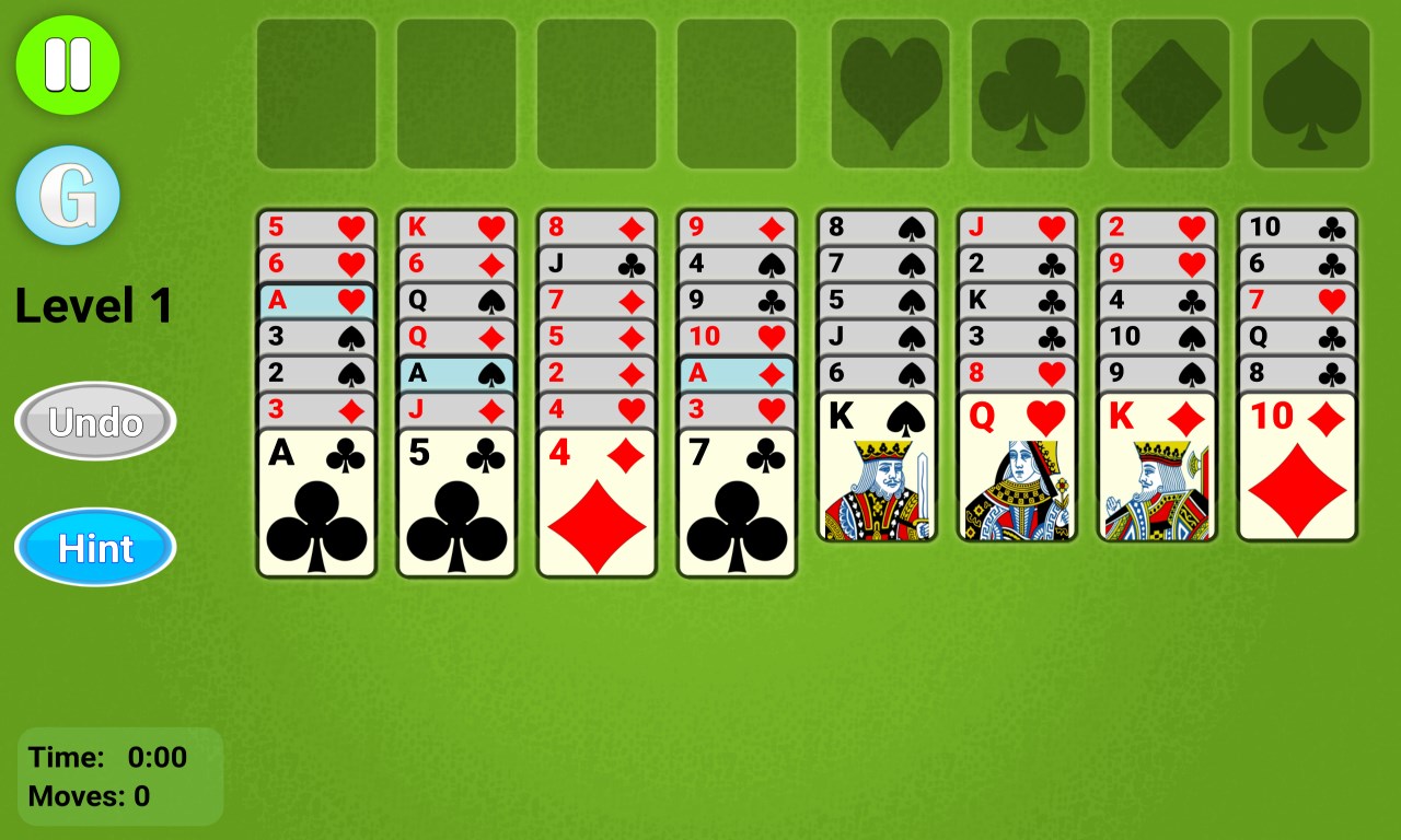 10,000 solvable levelsAdvanced Hint optionUnlimited UndoAuto Collect remaining cards for solved levelsYou can either drag and drop cards or you can tap to move. High resolution graphics and an intuitive interfacePersonalize how the cards look (back and front) or pick a different background for the game;