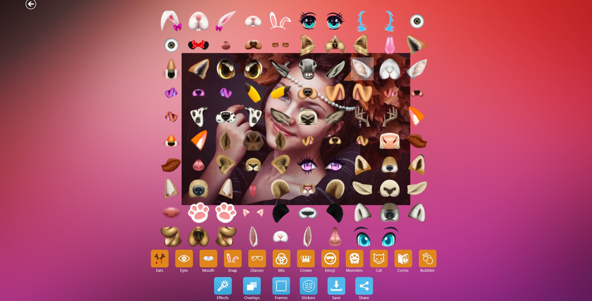 Create a great selfie by adding snap filters like doggy face, cat face, rabbit face, rainbow filter, anime eyes, mouth,ears,monster,Bubbles, Glasses,emoji, tears, snap text and more