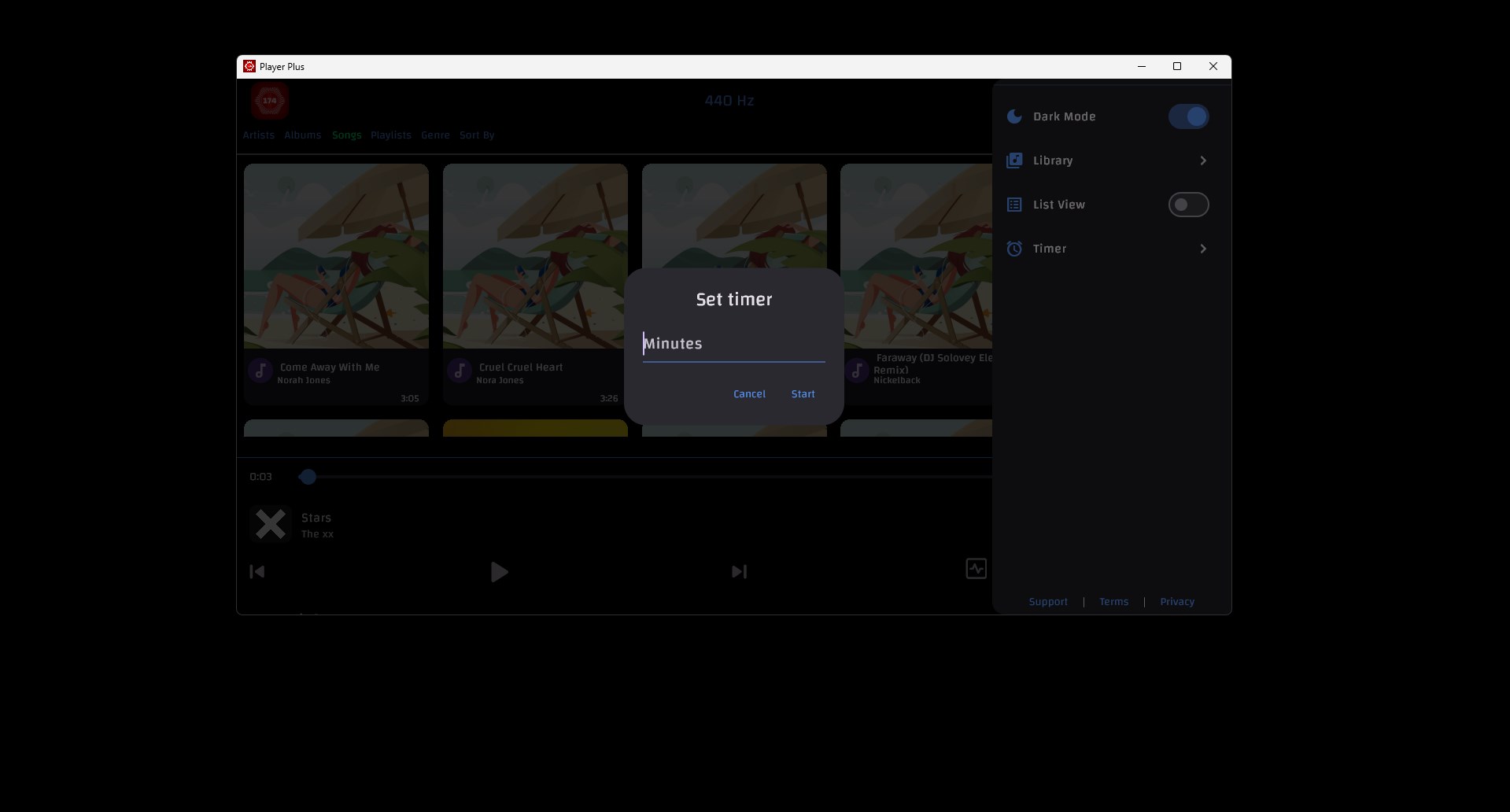 440 Hz to 174 HzRetune 440 Hz Music to 174 HzMusic player with shuffle, repeat one, repeat all modesMusic player with sleep timerMusic player with custom playlists