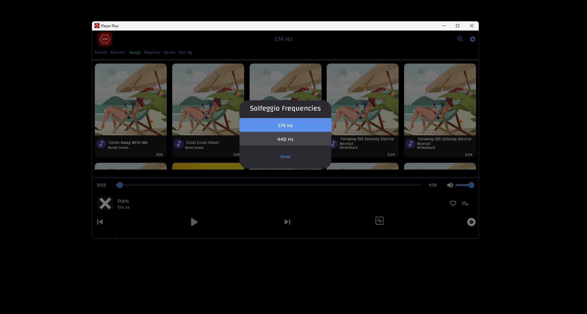 Rediscover your music with 174 Player Plus, the ultimate music player that transforms your listening experience by automatically retuning your favorite tracks to the soothing frequency of 174 Hz. Effortlessly enhance your connection with your music while saving time, money, and storage—no need to convert files manually!