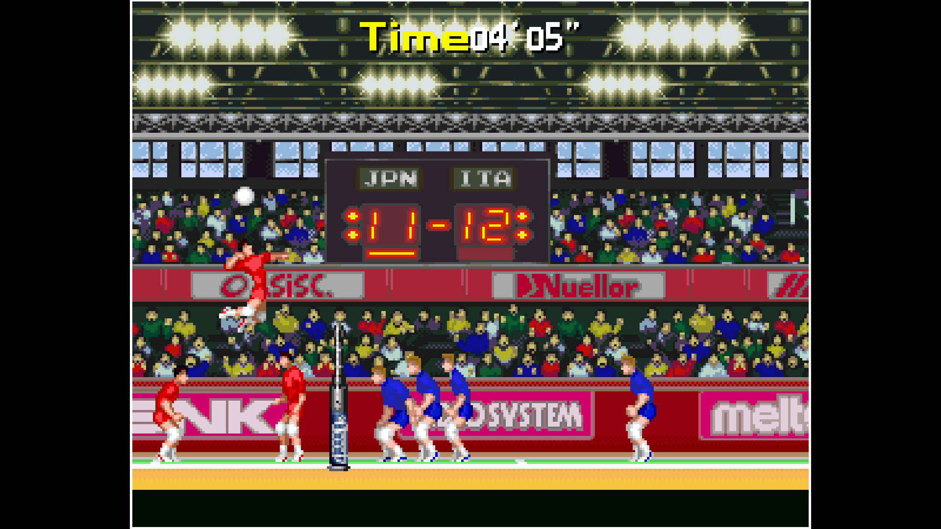 POWER SPIKES II is a sports game released in 1994 by VIDEO SYSTEM. It features the Hyper Mode where the world's strongest 8 teams compete along with the World Men's and World Women's teams in this futuristic fighting volleyball. In Hyper Mode, commands for special serves and spikes can be input for an intense battle.
