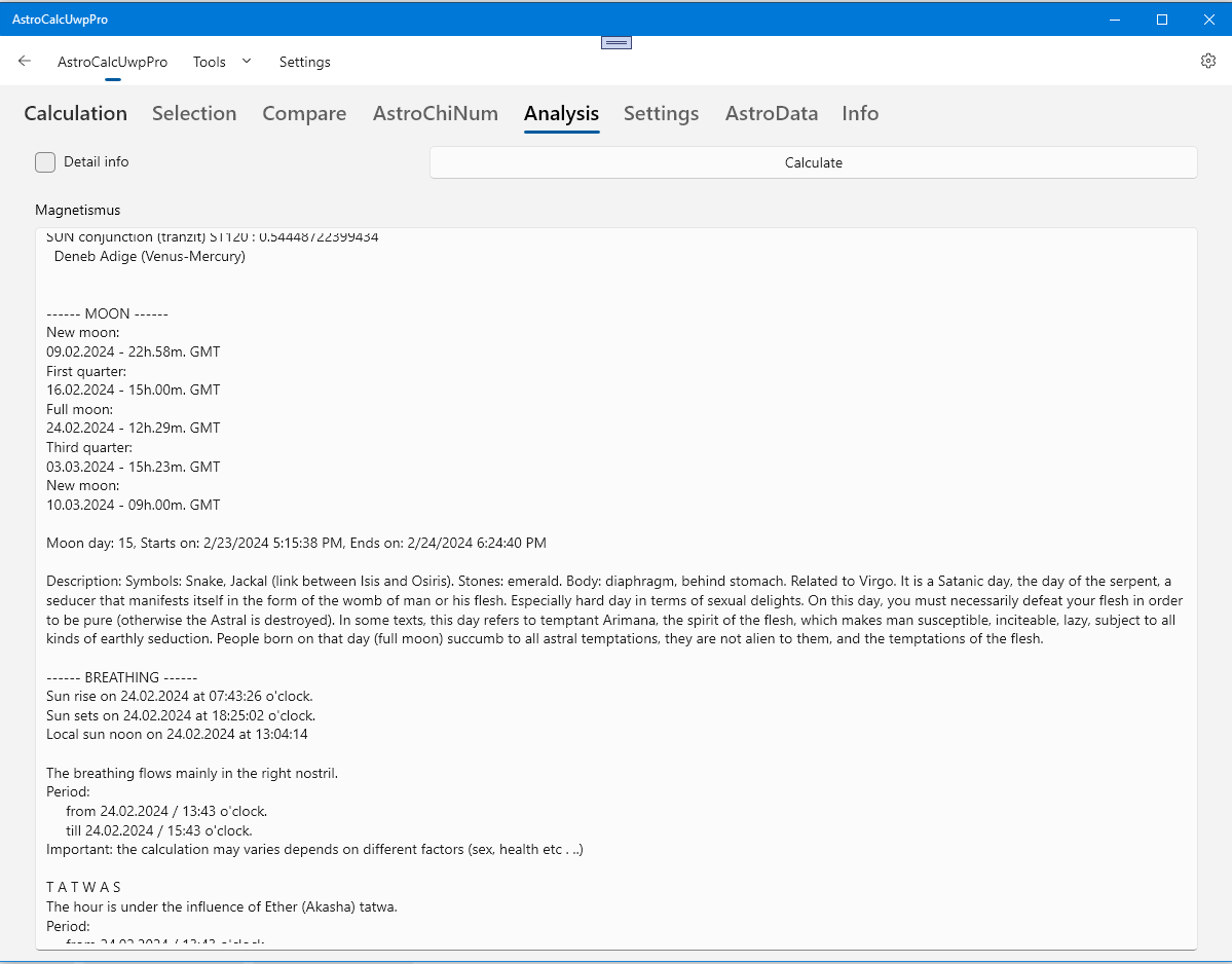 - Magnetism: compact astrology info, based on sun, moon and stars, lunar calendar, tatwas, etc...