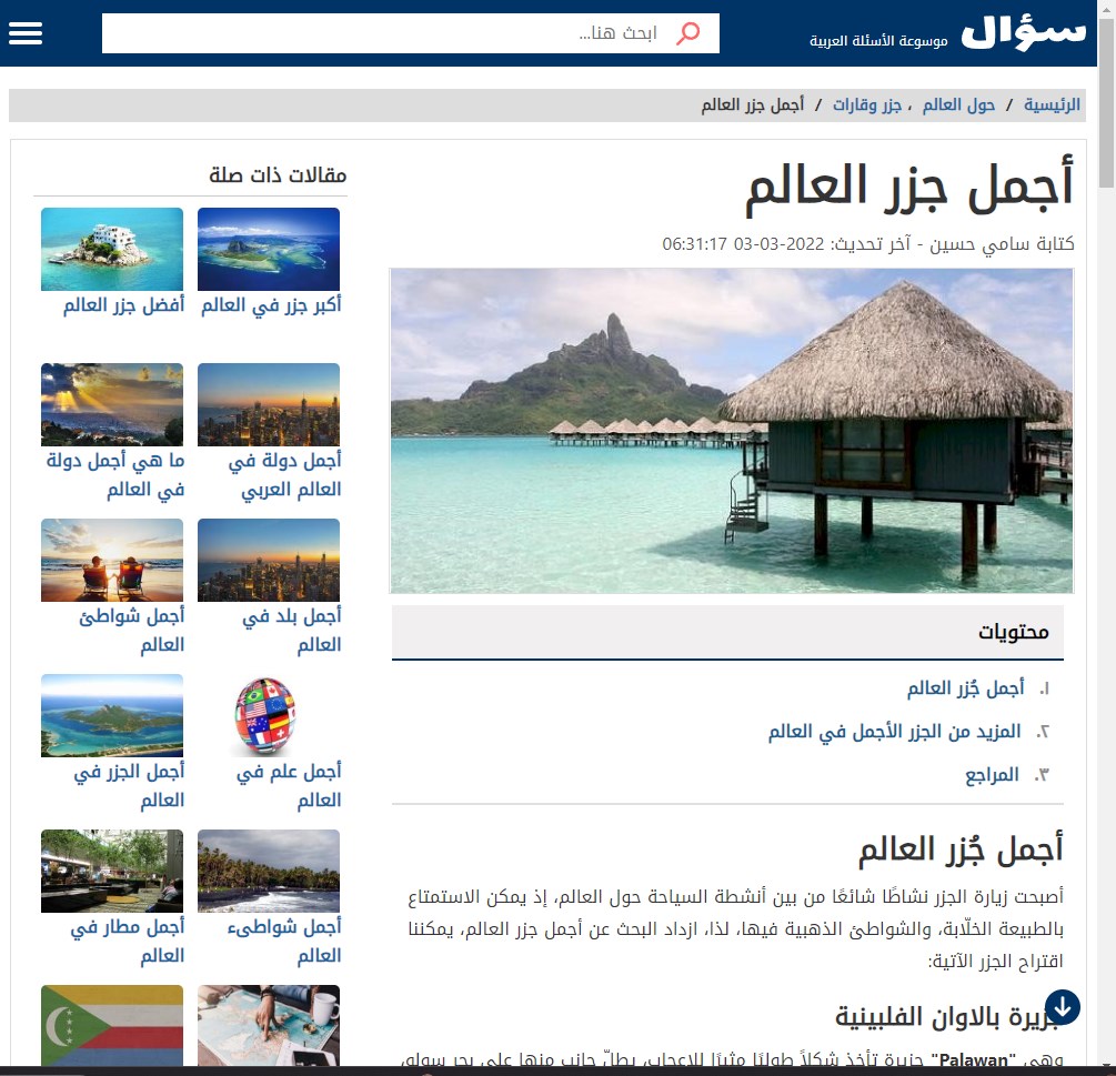 Soo2al is an Arabic website that constitutes an encyclopedia of knowledge and covers a wide range of topics including cooking, self-care, science, and nutrition. The site offers rich content that includes detailed articles and questions and answers, making it a valuable source of information. It allows users to access the latest articles and search in... Various topics