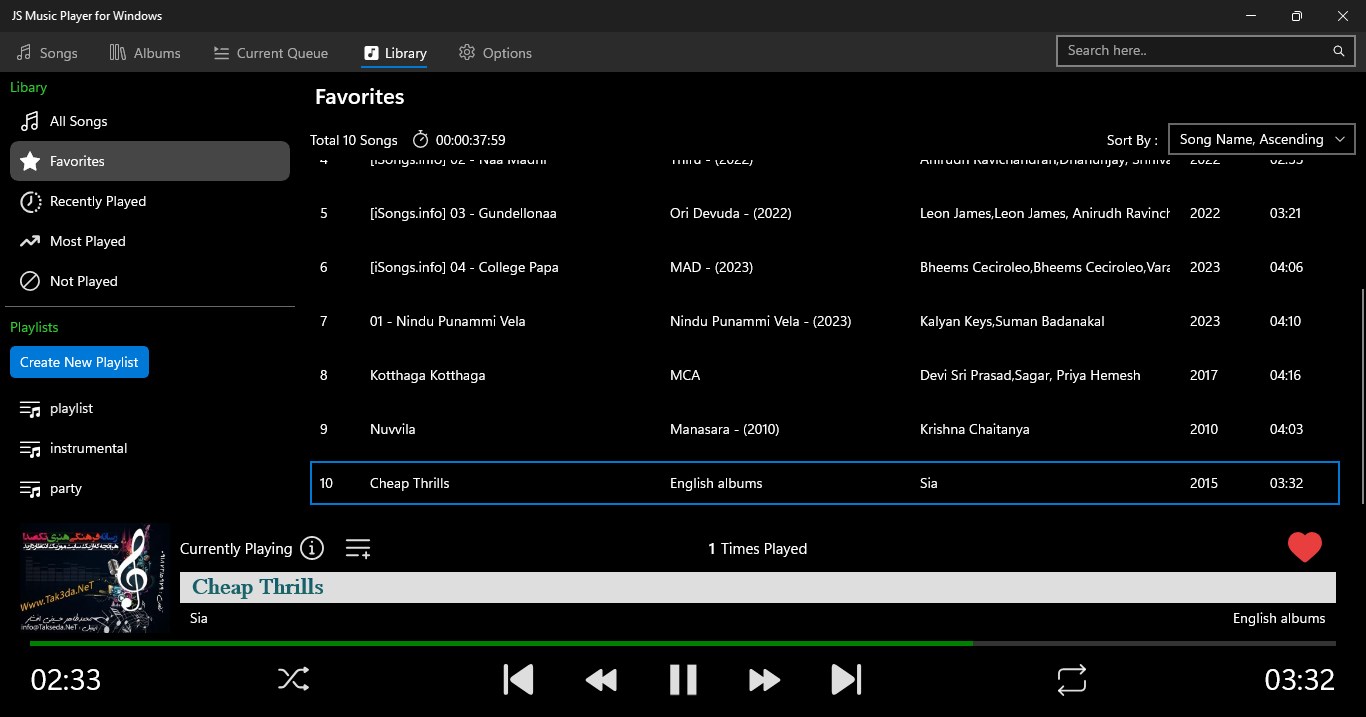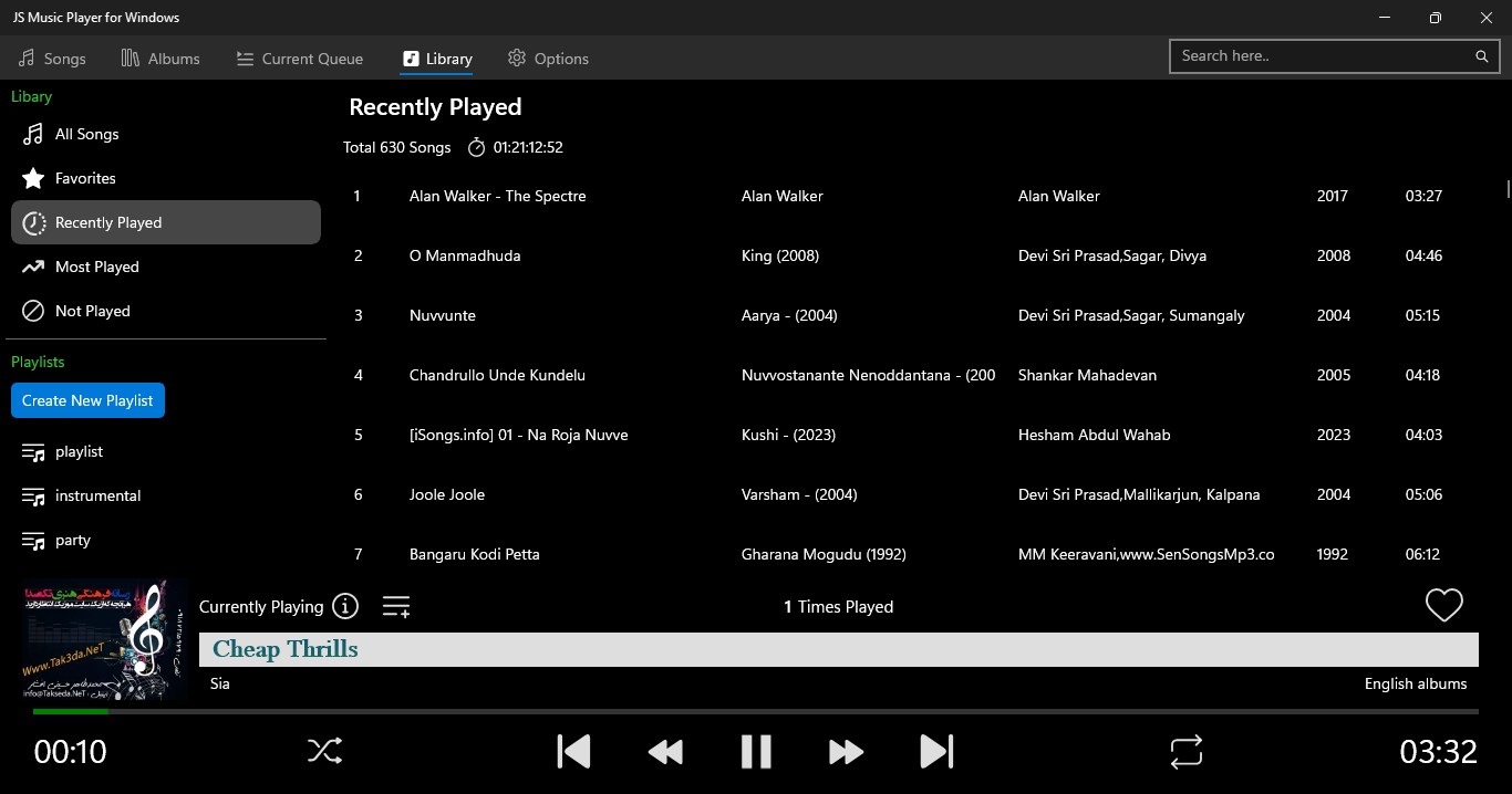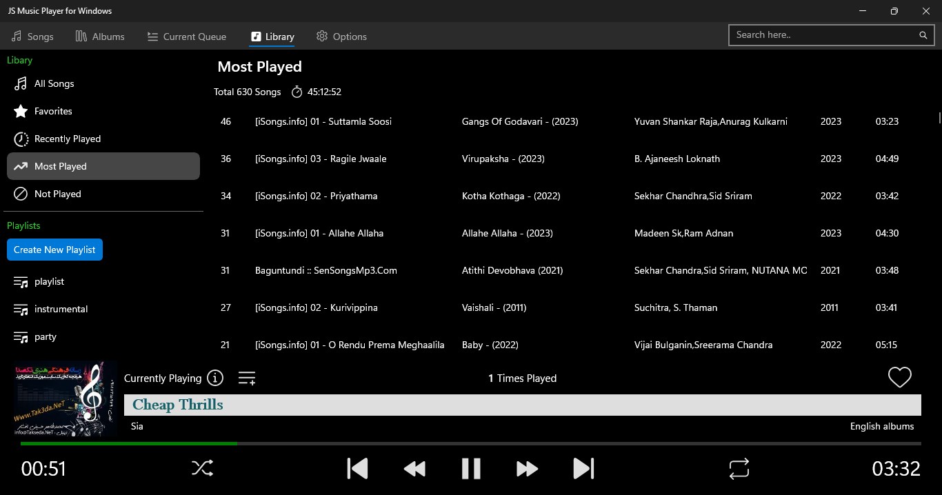 JS Music Player, your ultimate music companion for windows. Enjoy your favorite albums wherever you go with the support of various audio formats. The app provides clean and user friendly interface makes it easy to organize and play your favorite collection.