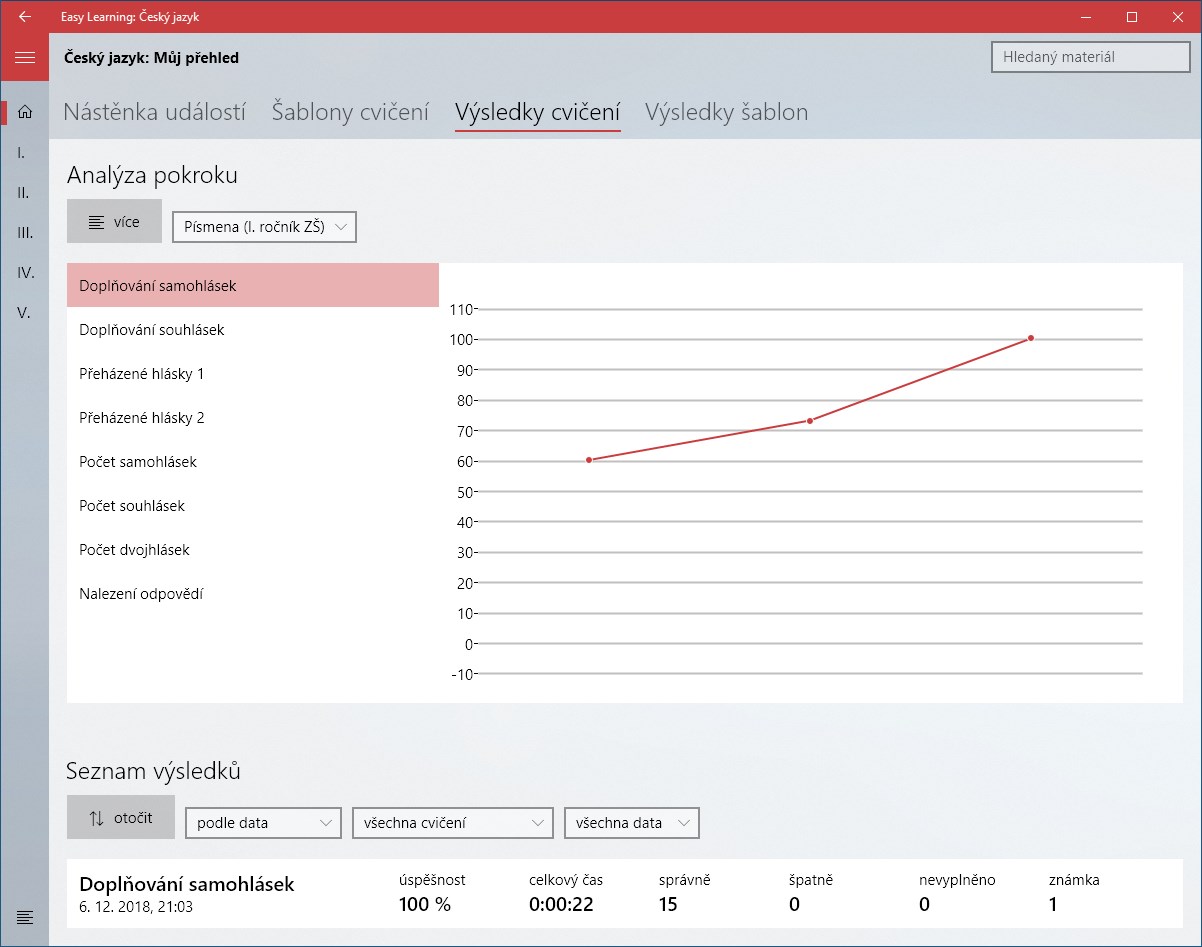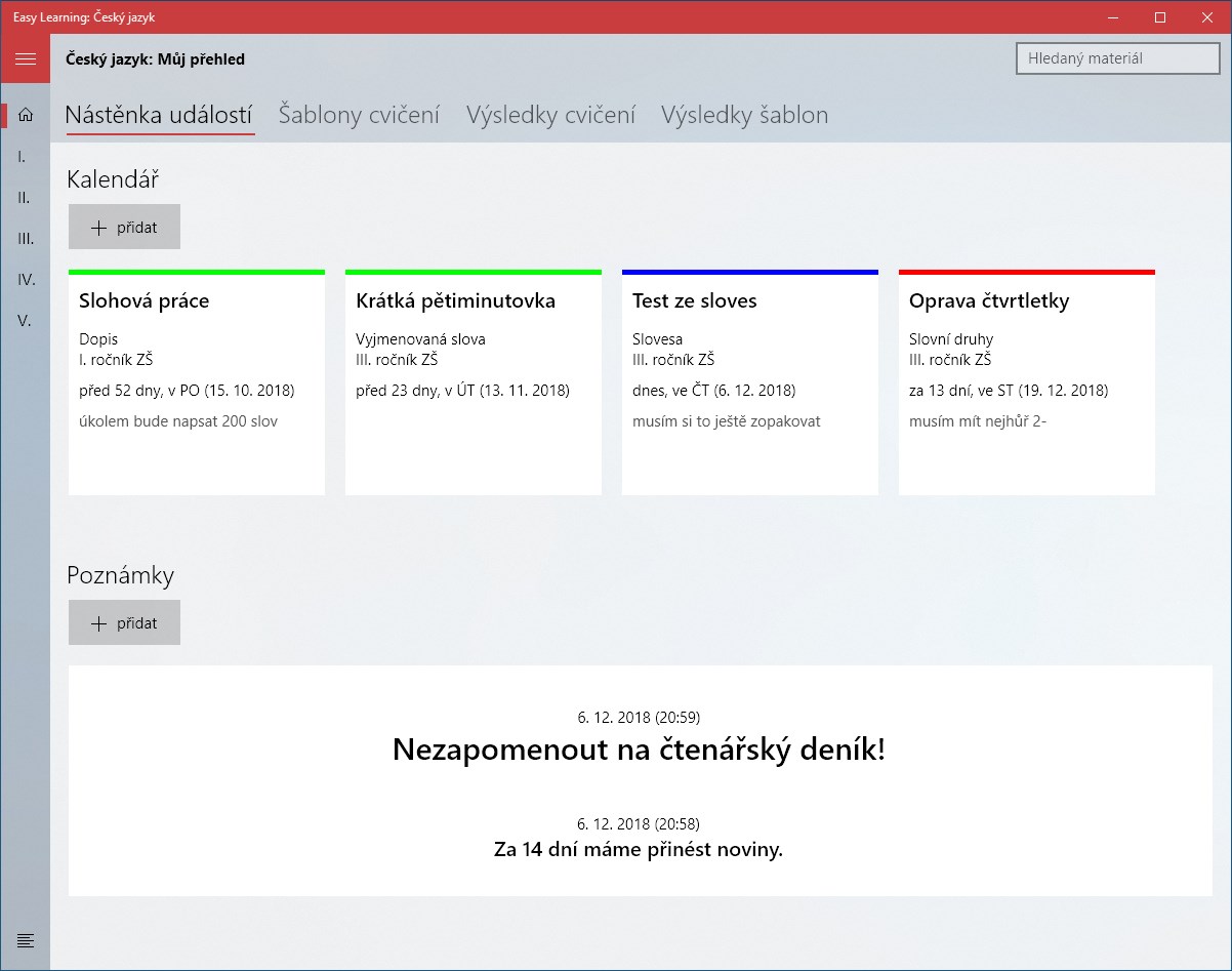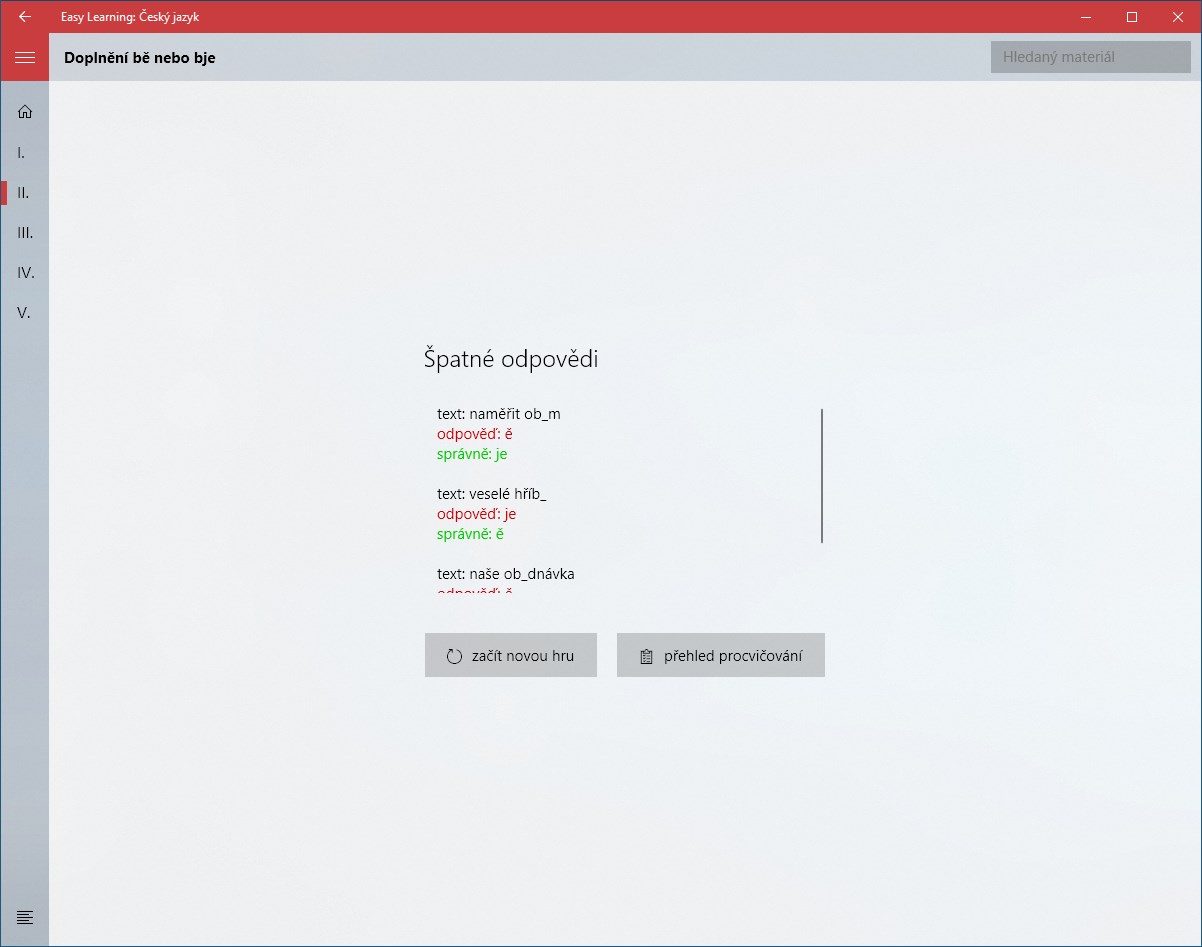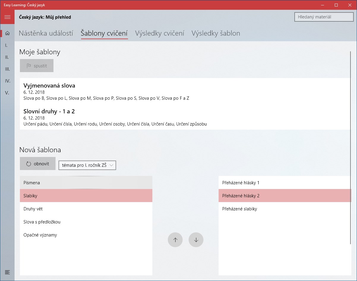 Učte se díky aplikaci Easy Learning: Český jazyk náš rodný jazyk snadněji než kdy dříve. Uvidíte, že je to velká zábava! Aplikace obsahuje výukovou i procvičovací část. Ve výukové se nacházejí jednoduché přehledy témat, přičemž některá tato témata umožňují přímou interaktivitu, ku příkladu lze v českém jazyce využívat stylus pro obtahování písmen, slabik a slov. Procvičovací část pak obsahuje stále se navyšující počet různých druhů cvičení a her, mezi něž patří dokončování textu, počítání jevů, rychlá hra, výběry z možností, seřazení částí slov, dopsání textu a další. Tyto materiály nabízejí bohaté možnosti nastavení a též je lze využívat v rámci tzv. šablon, což je sousled několika po sobě jdoucích cvičení. Navíc, protože náš projekt vyvíjíme zcela universálně, si může každý vytvořit své vlastní cvičení díky webové aplikaci Easy Learning: Material Creator a to následně spustit. Samozřejmostí jsou automaticky získávané ceny pro motivaci žáka nebo generované grafy pokroků.