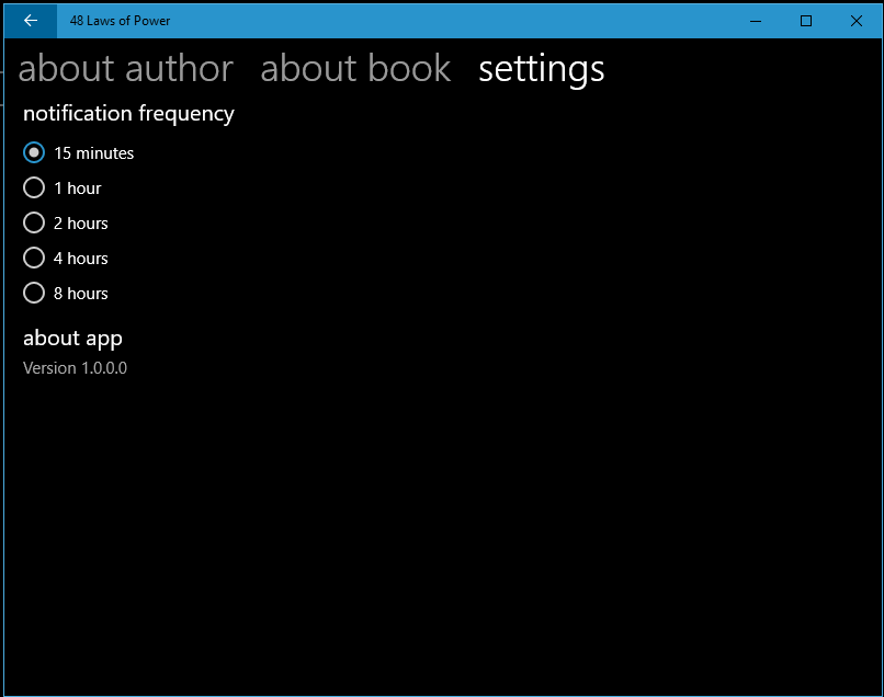 In the second section you can manage the appearance of a daily notification with the title of the current law. Once you allow notifications, from the day that enabled them in the following 48 days you will see a different law, every day. Tapping in the notification, you can access the app and view its description.